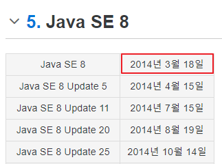 https://namu.wiki/w/Java/%EB%B2%84%EC%A0%84%20%EC%A0%95%EB%B3%B4