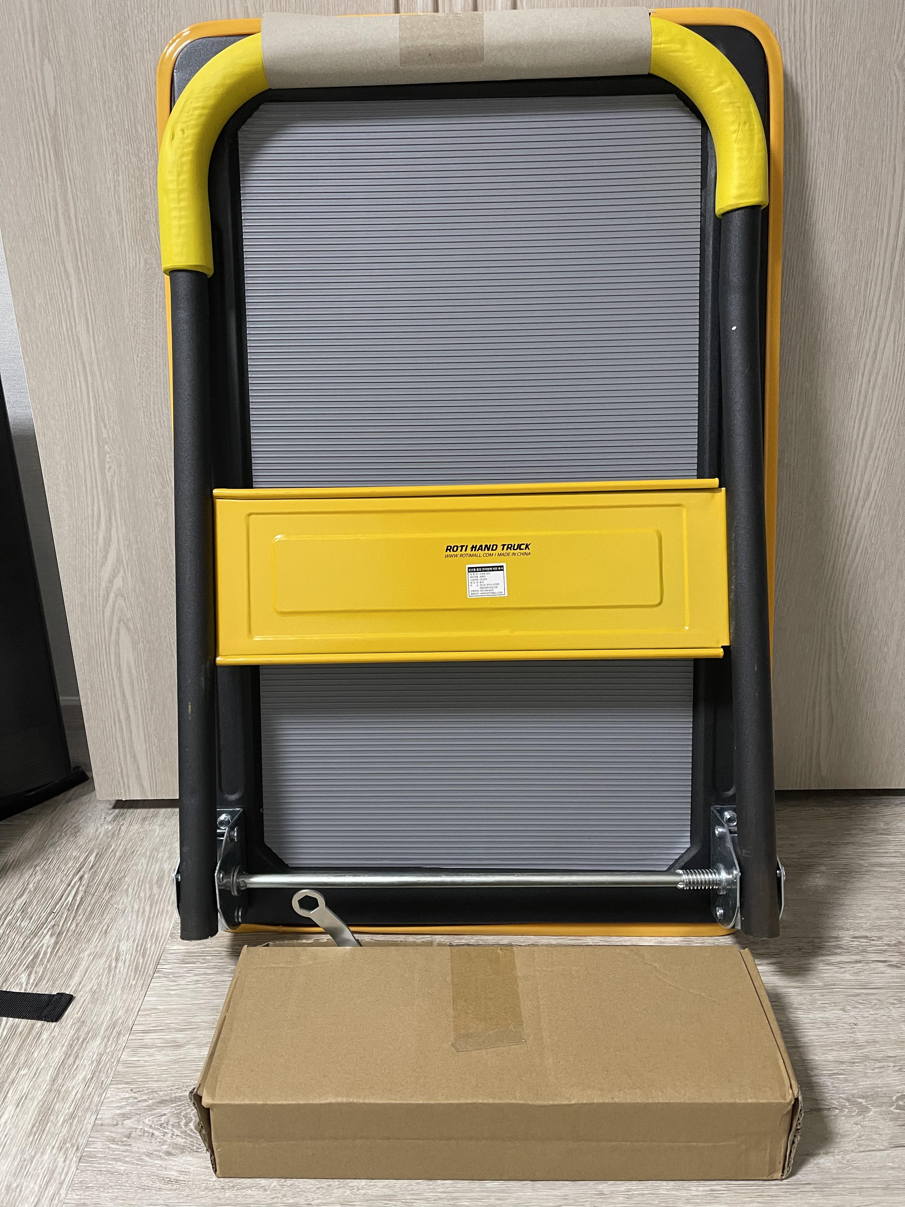 완전하게 조립이 된 모습이다. 일반 초록색 카트와 다르게 아주 세련된 디자인이 마음에 든다. 이 카트에 물건을 실어서 이사를 가게 될 집에 물건을 실어 날랐는데 엄청나게 편리하다고 느꼈다. 이사를 자주 다니는 사람들이라면 돈을 아끼지 말고 5만 원 정도 투자하여 구루마 한 개 정도는 구매하는 것을 극히 추천한다.