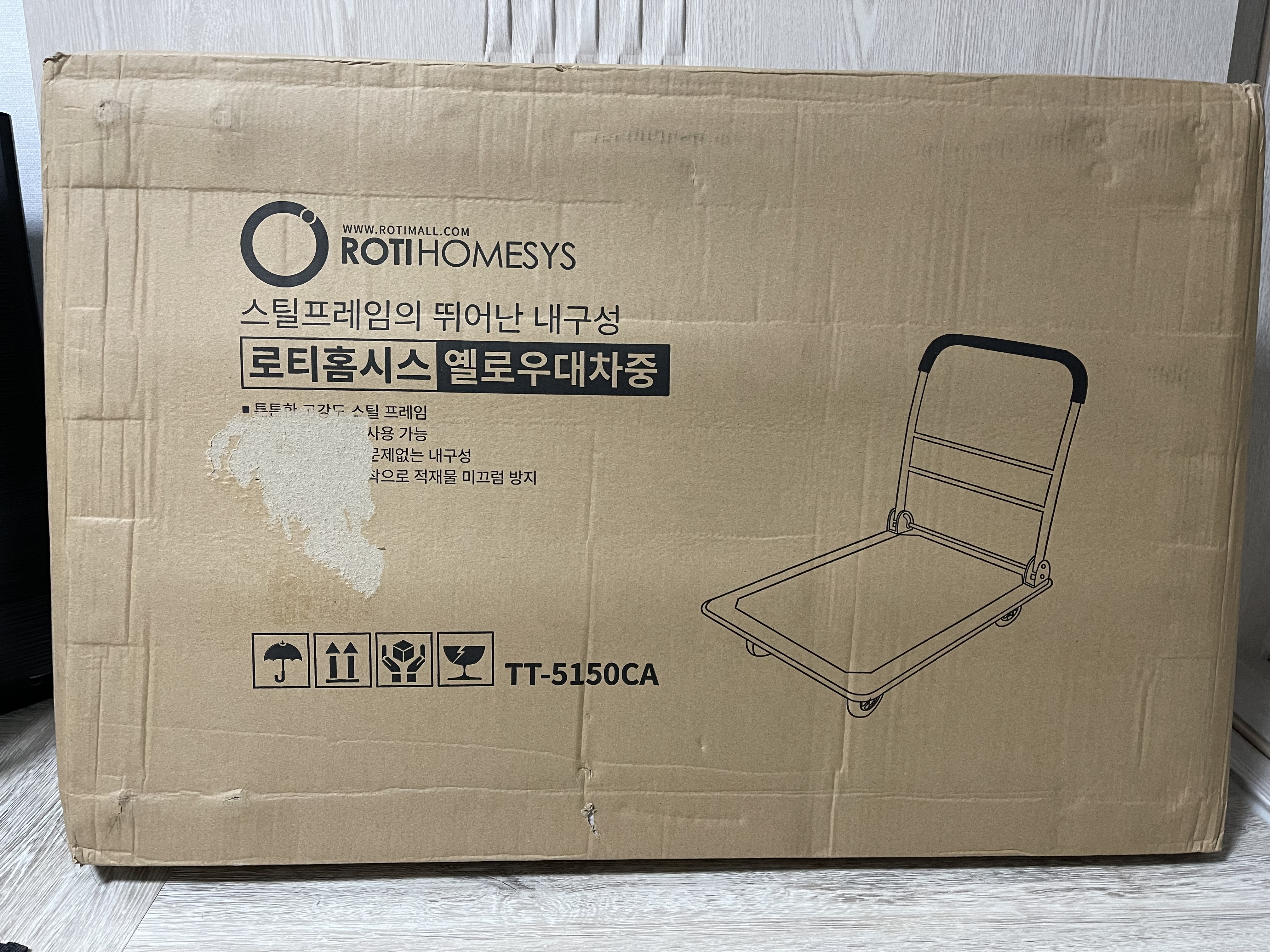 나의 경우 네이버에서 판매하고 있는 '로티 홈시스 수레형 접이식 카트 구루마 대차 구루마 수레 핸드카 끌차'라는 제품을 구매했다. 우선 나의 경우에는 노란색 카트를 구매했는데 이유는 디자인이 마음에 들었고 구루마 판위의 재질이 고무로 되어있다 보니 물건을 올려놔도 물건이 잘 미끄러지지 않아 해당 제품으로 선택했다.
