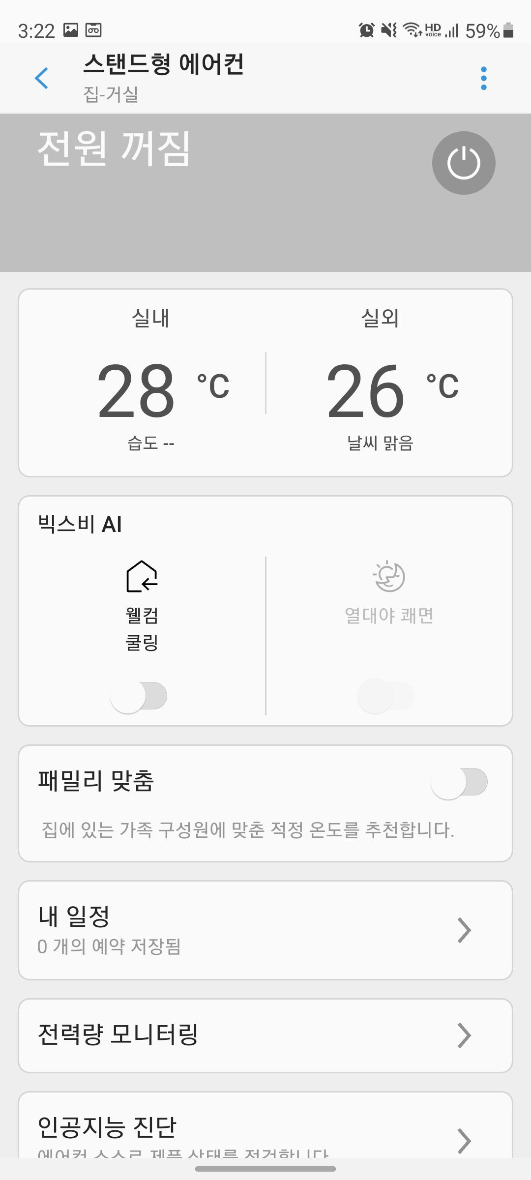 앱을 실행했을 때 모습이다. 현재 에어컨이 꺼져있어서 꺼져있다고 표시가 된다.