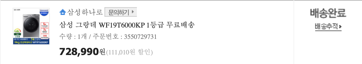 우선 삼성전자 그랑데 WF19T6000KP 모델을 선택하게 된 이유는 우선 통돌이의 경우에는 삶음 기능이 되지 않는다. 하지만 드럼세탁기의 경우 삶음 기능이 가능하다. 또 세탁용량이 아주 마음에 들었다. 여태까지 원룸에서 사용하던 세탁기의 경우 용량이 9kg에서 12kg 수준이었던 것 같은데 이번에 19kg로 구매하게 되면서 속이 후련해졌다. 이불 빨래를 하기 위해 이불 빨래방을 갈 필요가 없어졌기 때문이다. 빨래를 챙겨서 세탁방까지 이동하는 것도 노동이며 빨래가 끝날 때까지 기다려야 하는 것도 시간 낭비였기 때문에 이불빨래가 가능하다는 것이 아주 만족스러웠다.