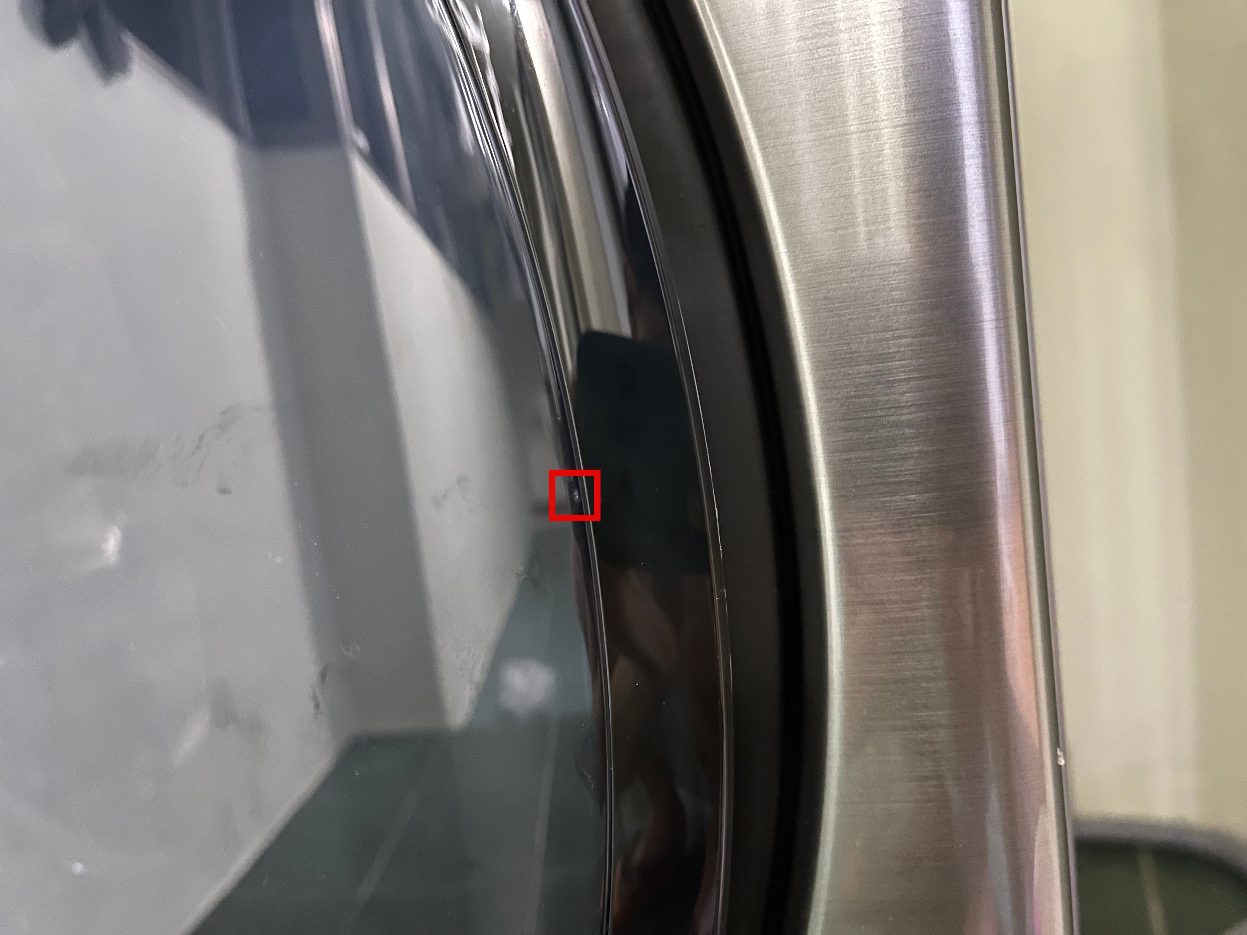 사진을 자세히 보면 빨간 상자 안에 작은 흠집이 있는데 세탁기 문을 열었을 때 세탁기 문이랑 벽면이 부딪혔기 때문에 생긴 흠집이다. 이대로 쭉 방치하면 흠집이 점점 깊어지거나 넓어질 것 같았기에 아래의 사진과 같은 조치를 취했다.