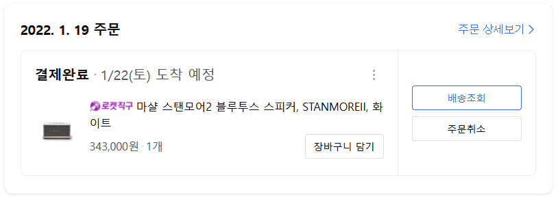 그리고 배송 상태의 기록인데 1월 22일날 받지는 못했다.