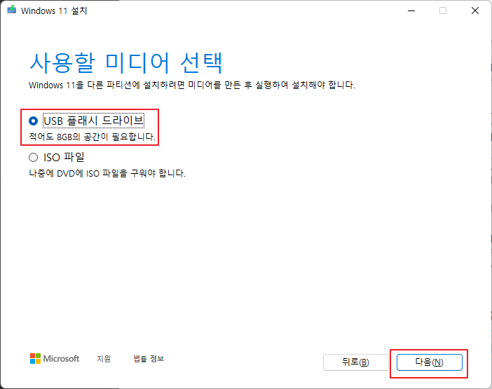 USB 플래시 드라이브 클릭 후 다음 클릭