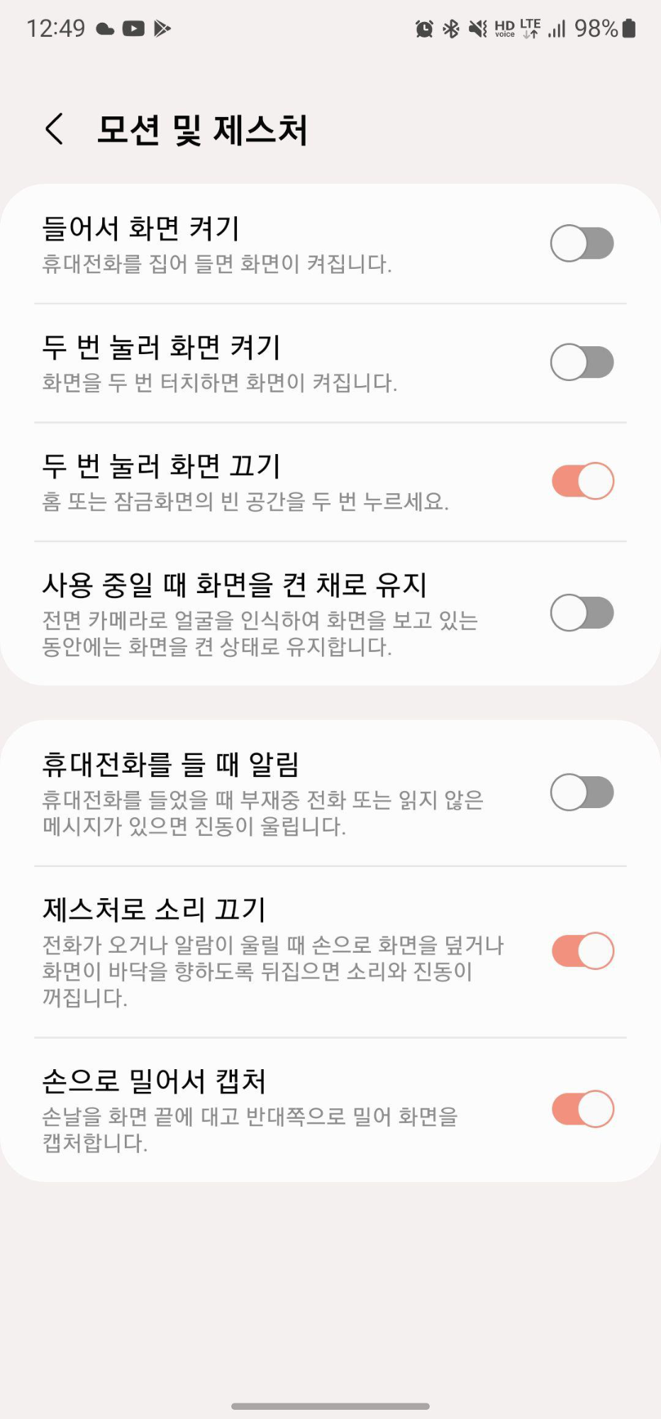 갤럭시를 사용하다 보면 호주머니에서 폰을 꺼냈는데 지문인식이 실패했다고 비밀번호로 로그인해야 한다고 하는 현상을 여러 번 겪어봤을 것이다. 위의 기능들이 켜져 있었기 때문인데 저 기능에 의해 호주머니에서 계속 화면이 켜지다 보니 배터리가 빨리 소모됐다고 생각된다.