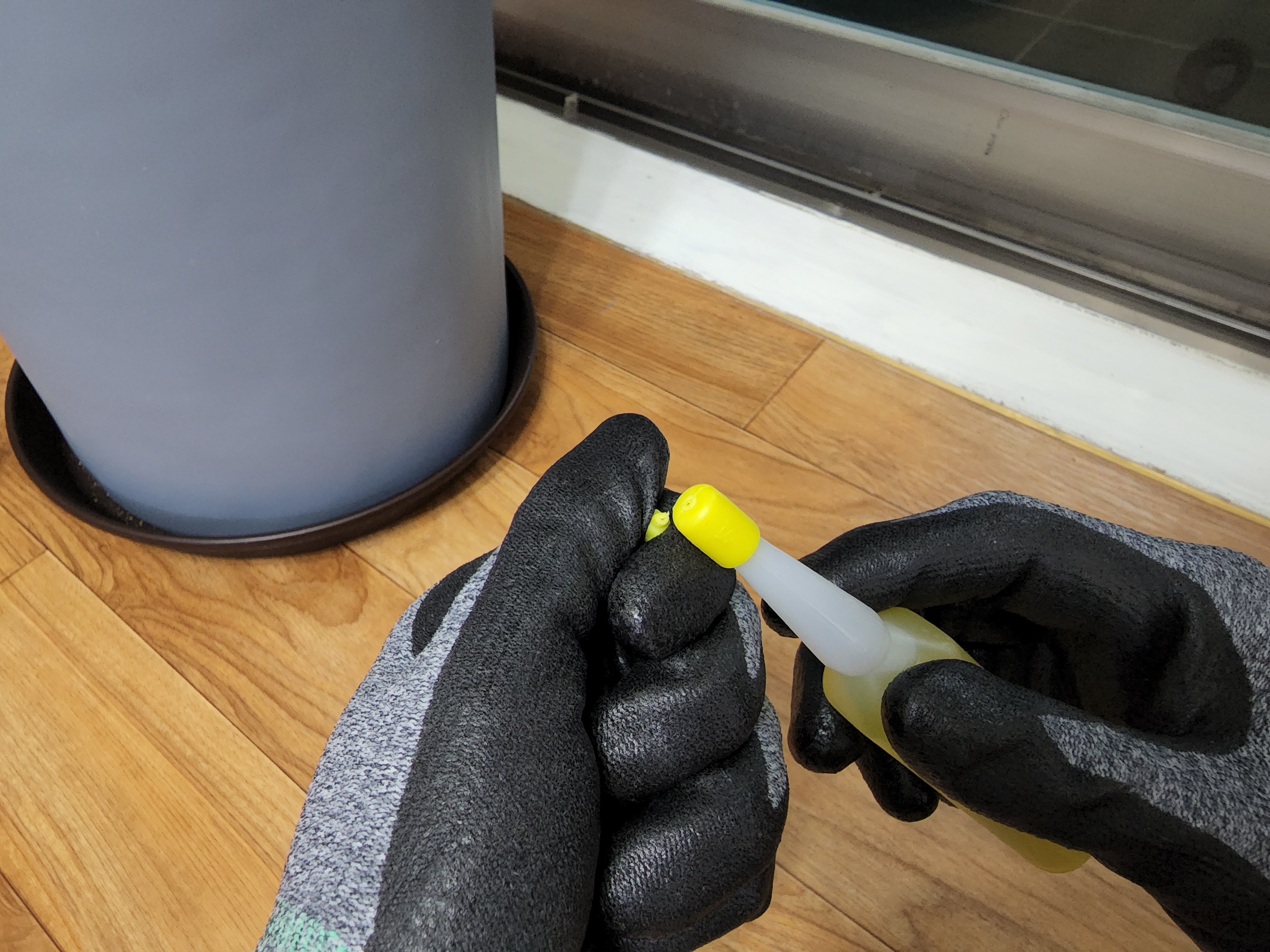 우선 식물영양제를 주입할 때 제일 위의 꼭지 부분을 떼어내야한다.