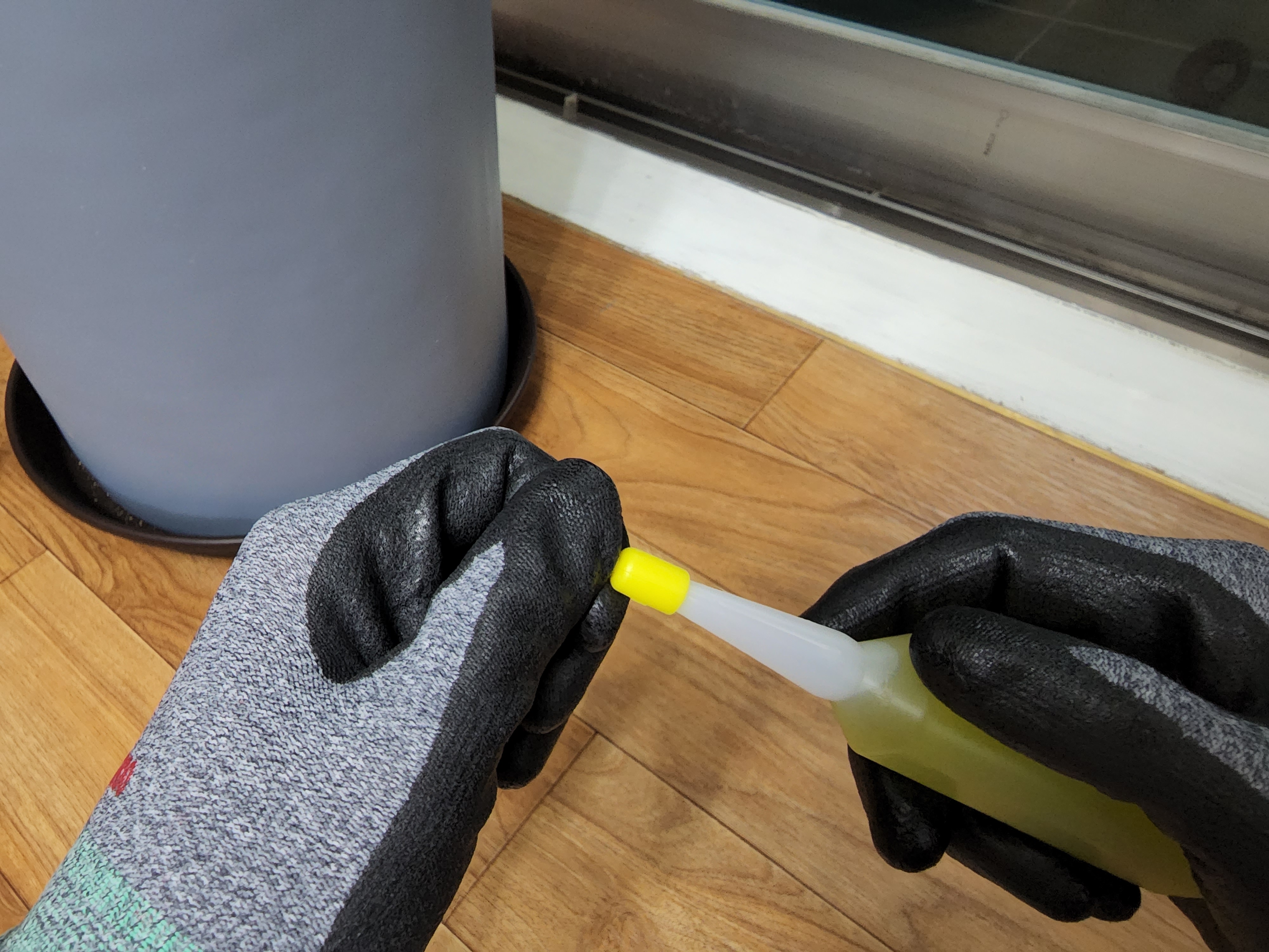 우선 식물영양제를 주입할 때 제일 위의 꼭지 부분을 떼어내야한다.