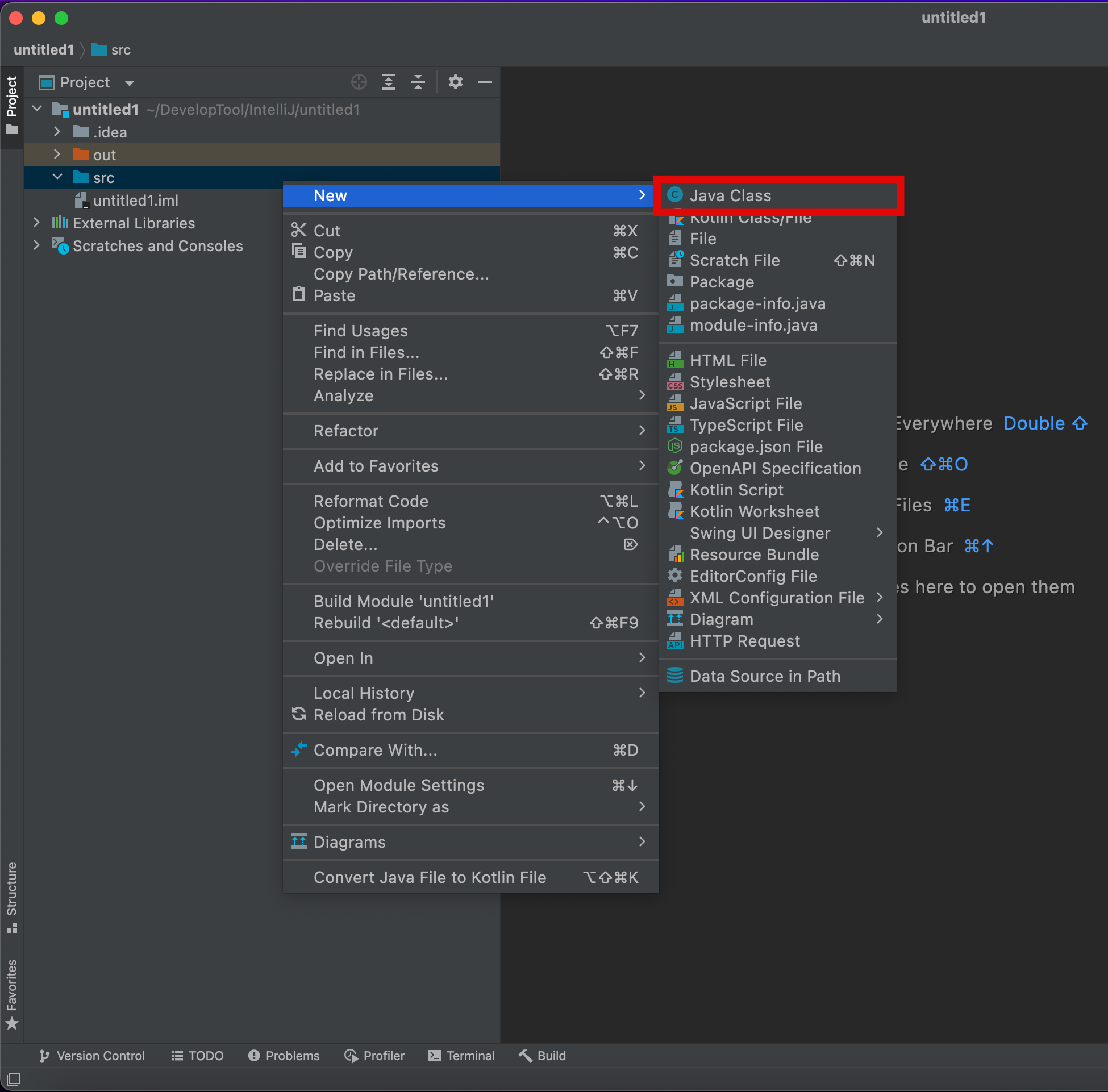 인텔리제이에서 자바 클래스를 생성하고 실행시켜보자.