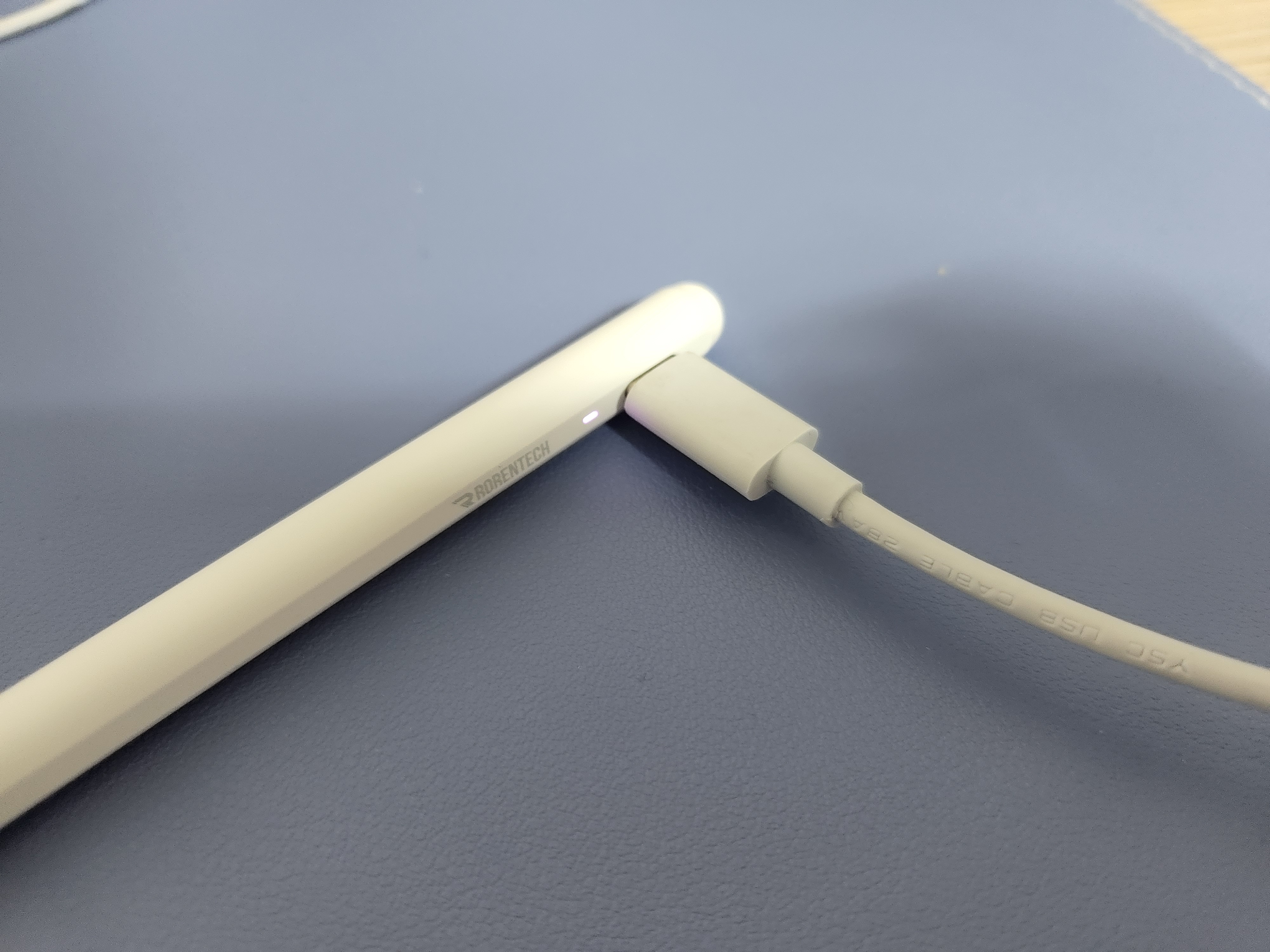 충전을 할 때는 C타입 케이블이 필요하다. 정품 애플펜슬은 무선 충전을 지원하는듯 하지만 이 제품은 지원하지 않는다.