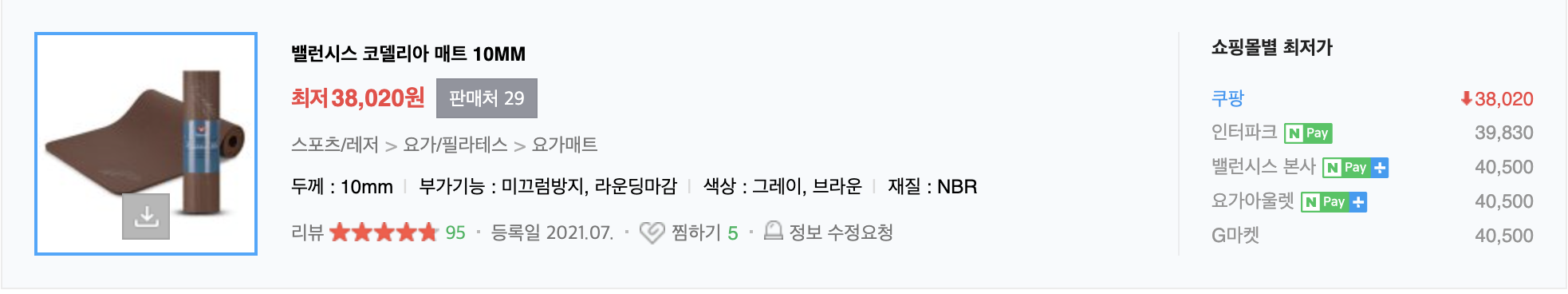 집에서 요가매트를 깔고 복습을 해보니 슈로스 운동의 경우 한쪽 무릎으로 본인의 체중을 지탱해야하는데 얇은 요가매트라서 무릎이 많이 아팠다. 반면에 필라테스 센터에서 사용하는 매트 위에서 운동을 하면 무릎이 별로 안아파서 센터에 있는 매트와 같은 제품으로 구매를 했다.