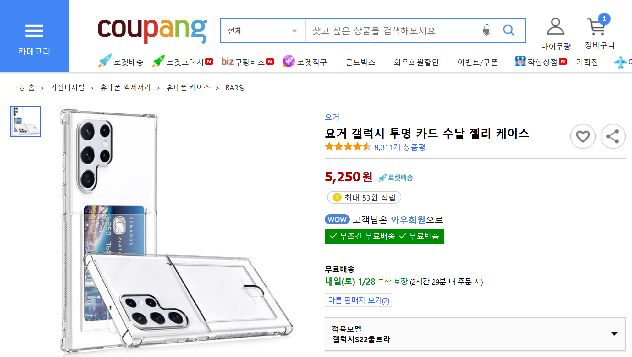 그래서 폰에 카드 하나 수납을 하면 되겠다 싶어서 카드 수납 케이스를 구매하게 됐다.