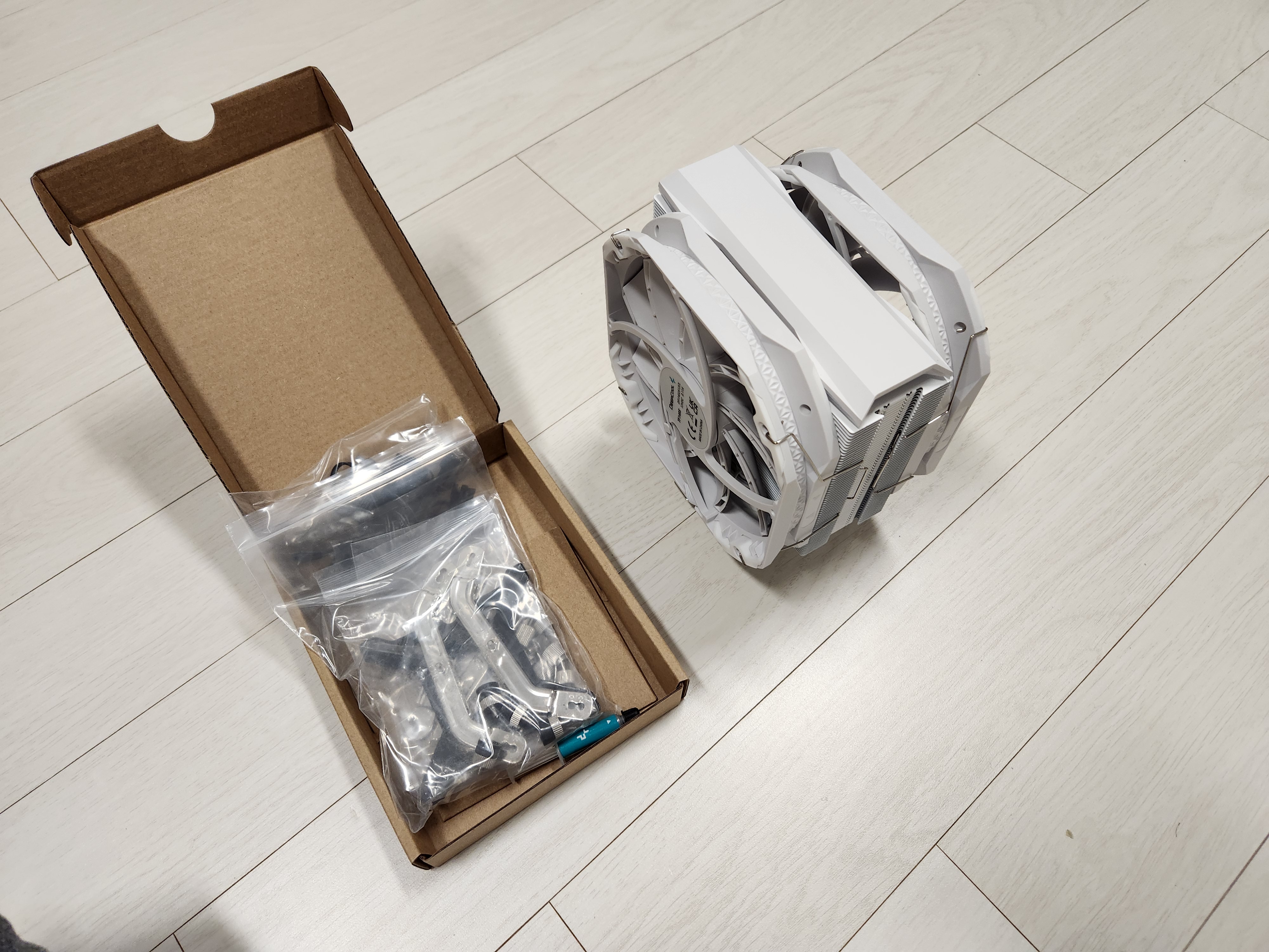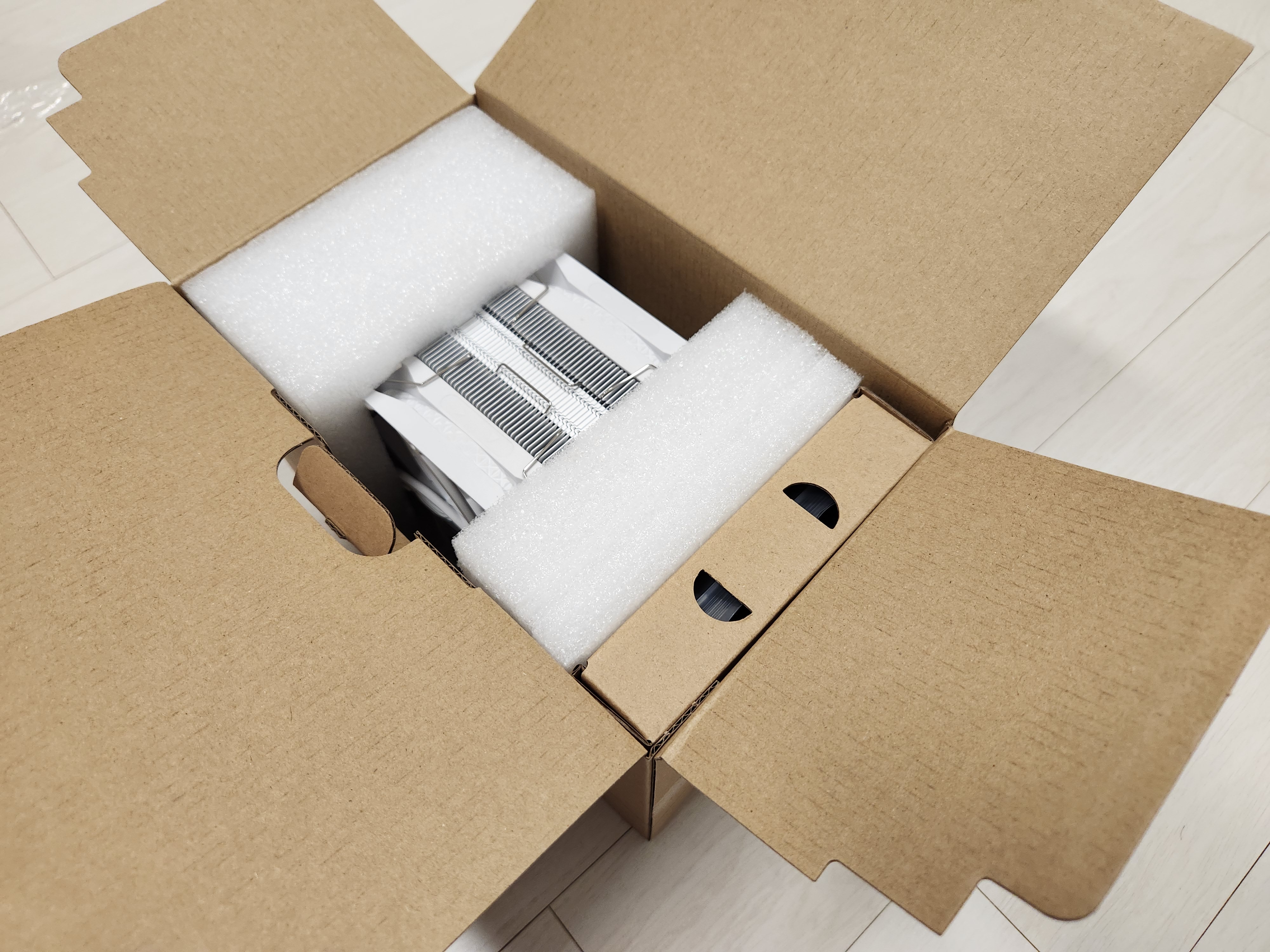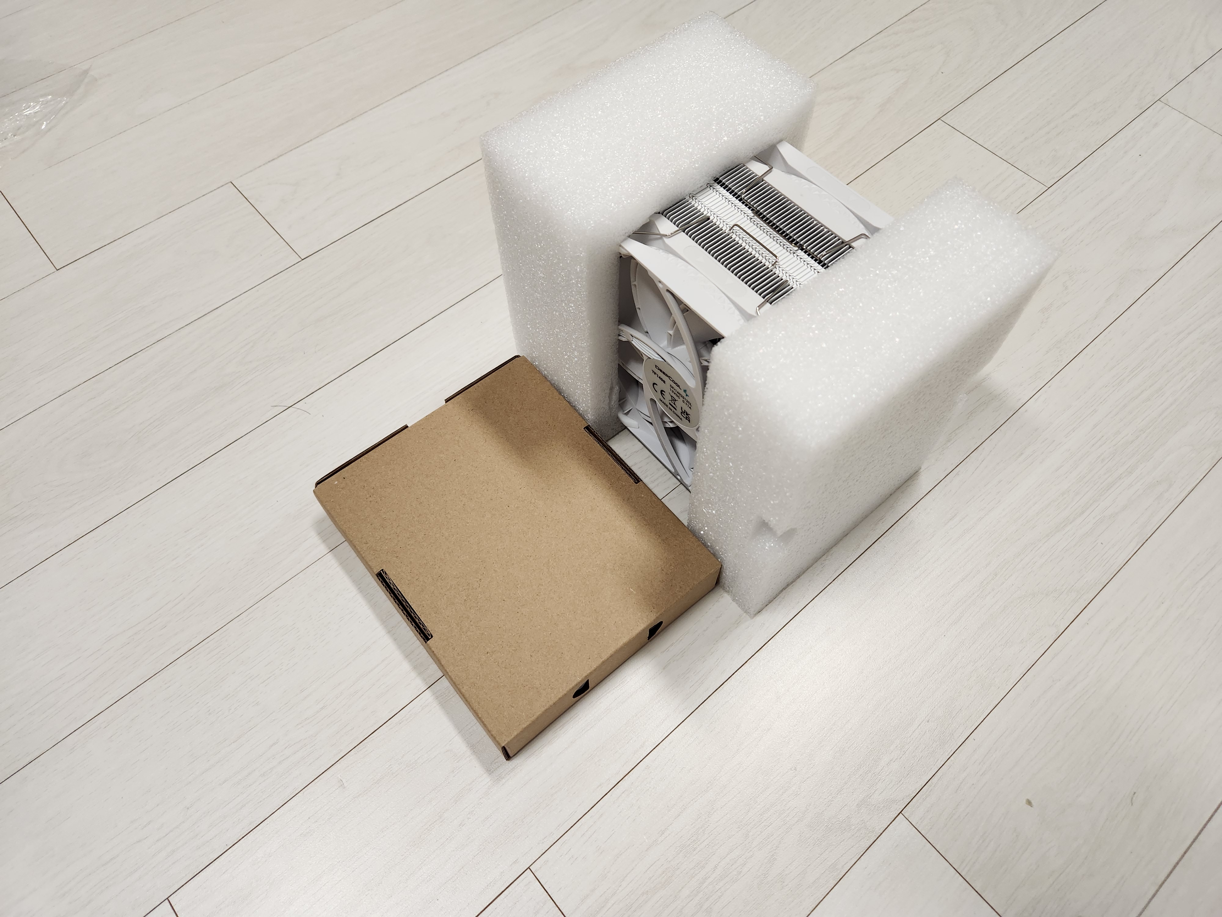 박스를 개봉해보면 스티로폼에 CPU쿨러가 감싸져있다.