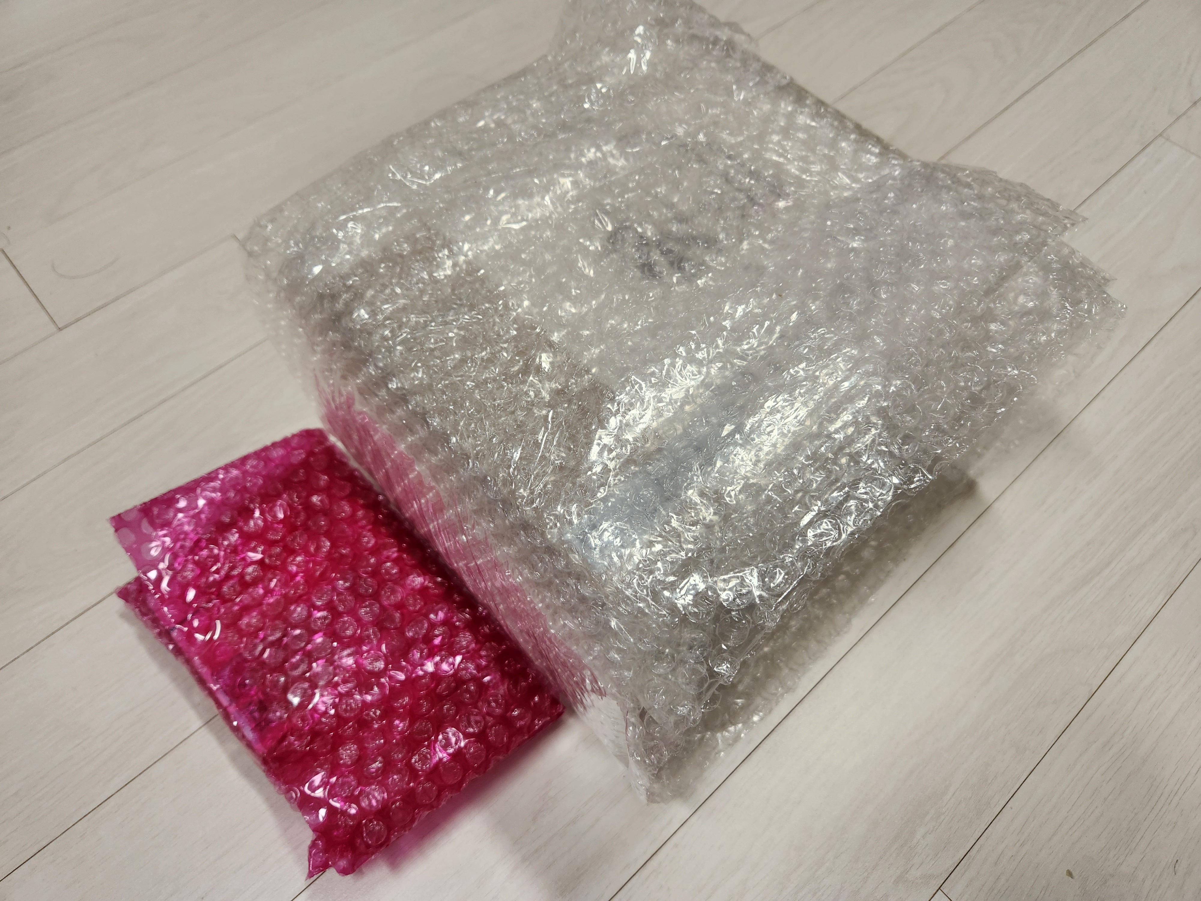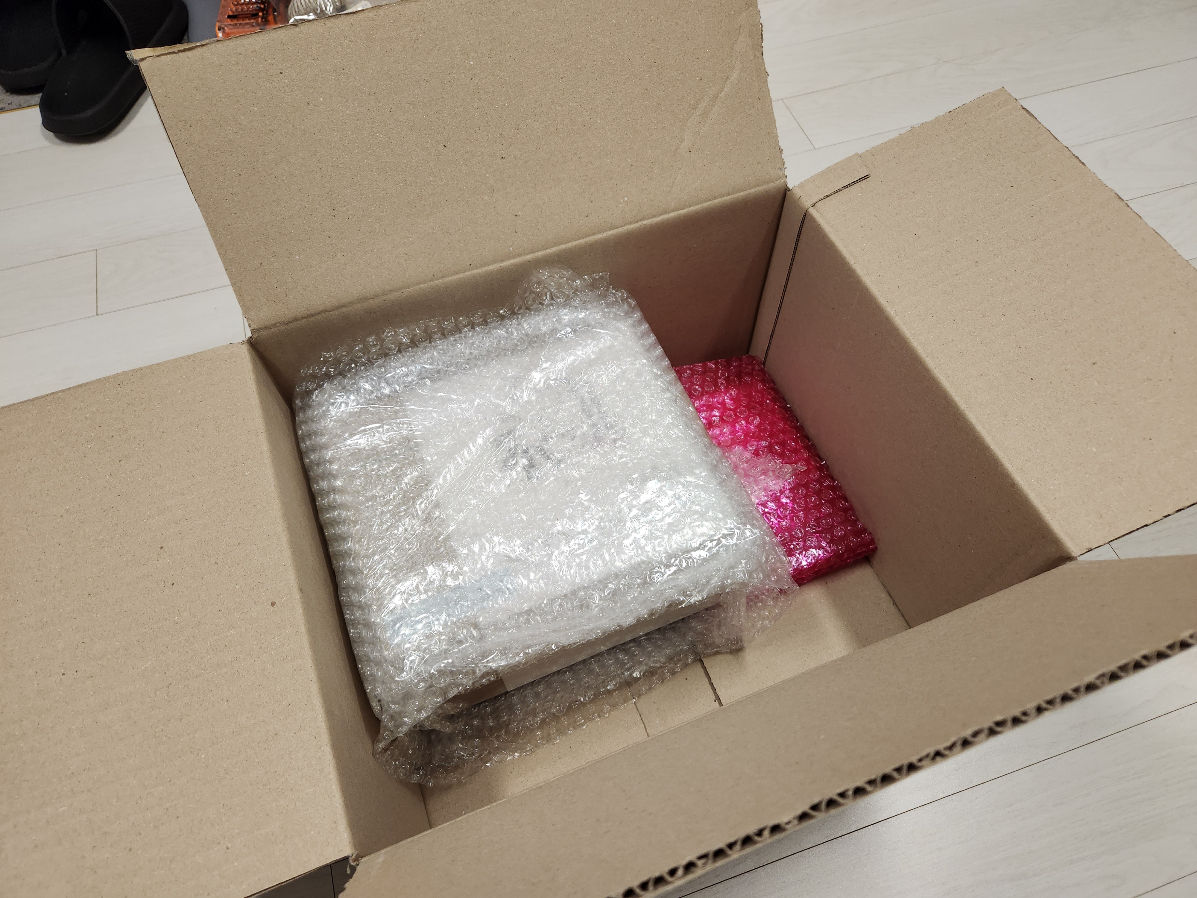 택배상자를 열어보면 구성품들은 에어캡에 감싸져있다.