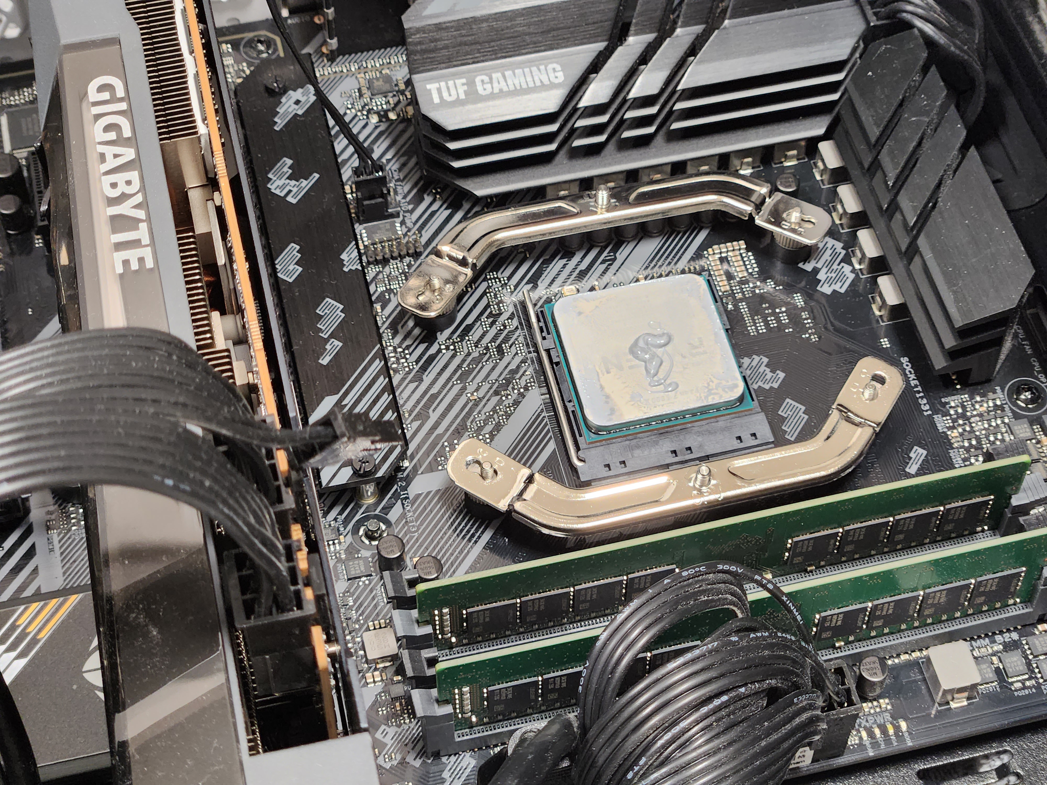 써멀구리스를 브라켓을 다 장착한 후에 발라야하는데 순서가 잘못됐다.ㅎㅎ