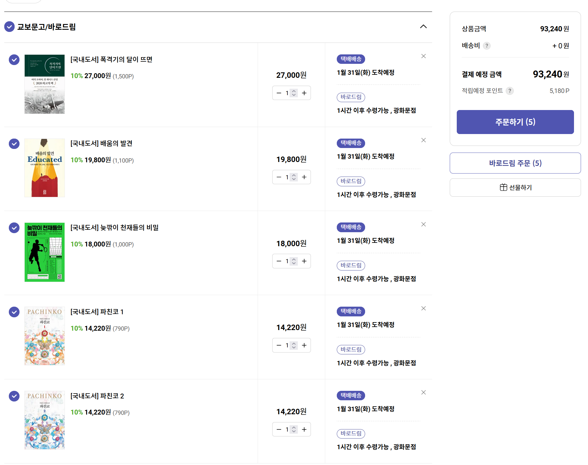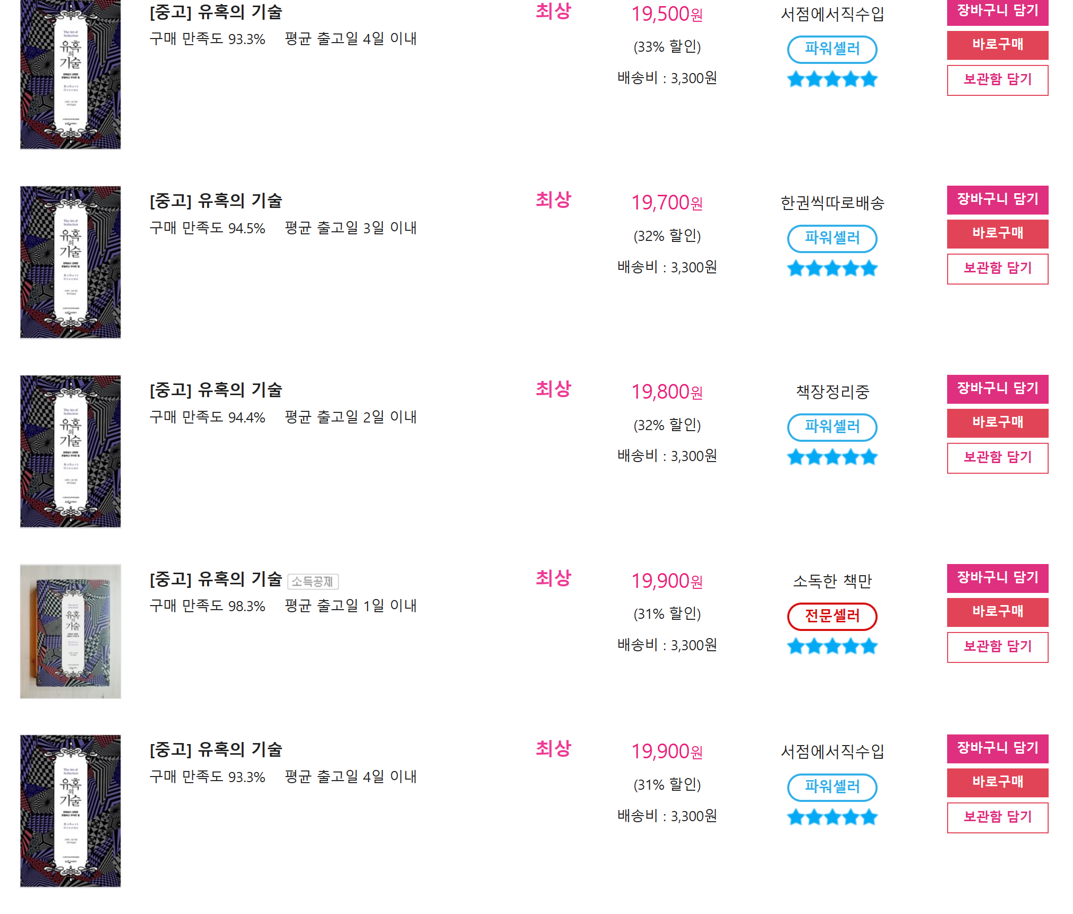 우선 책 상태를 중요시 하기 때문에 나는 품질이 최상인 제품들로 책을 구매했다.