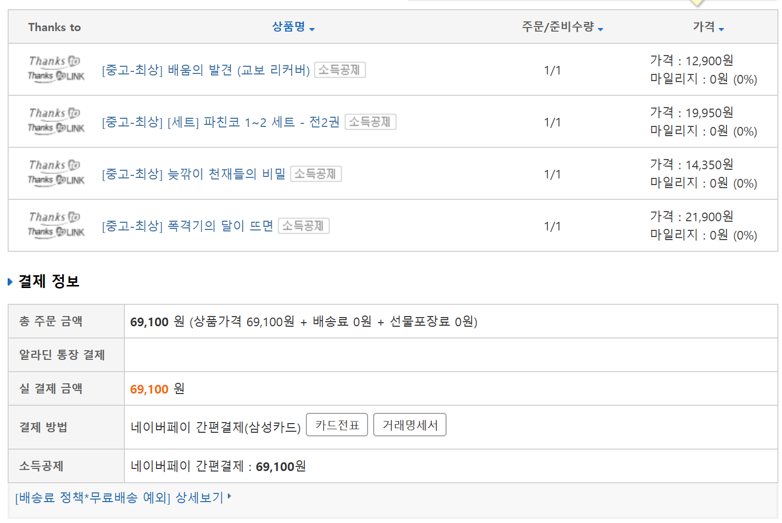 새책으로 구매할 경우 마일리지가 대략 5천원 적립되는데
