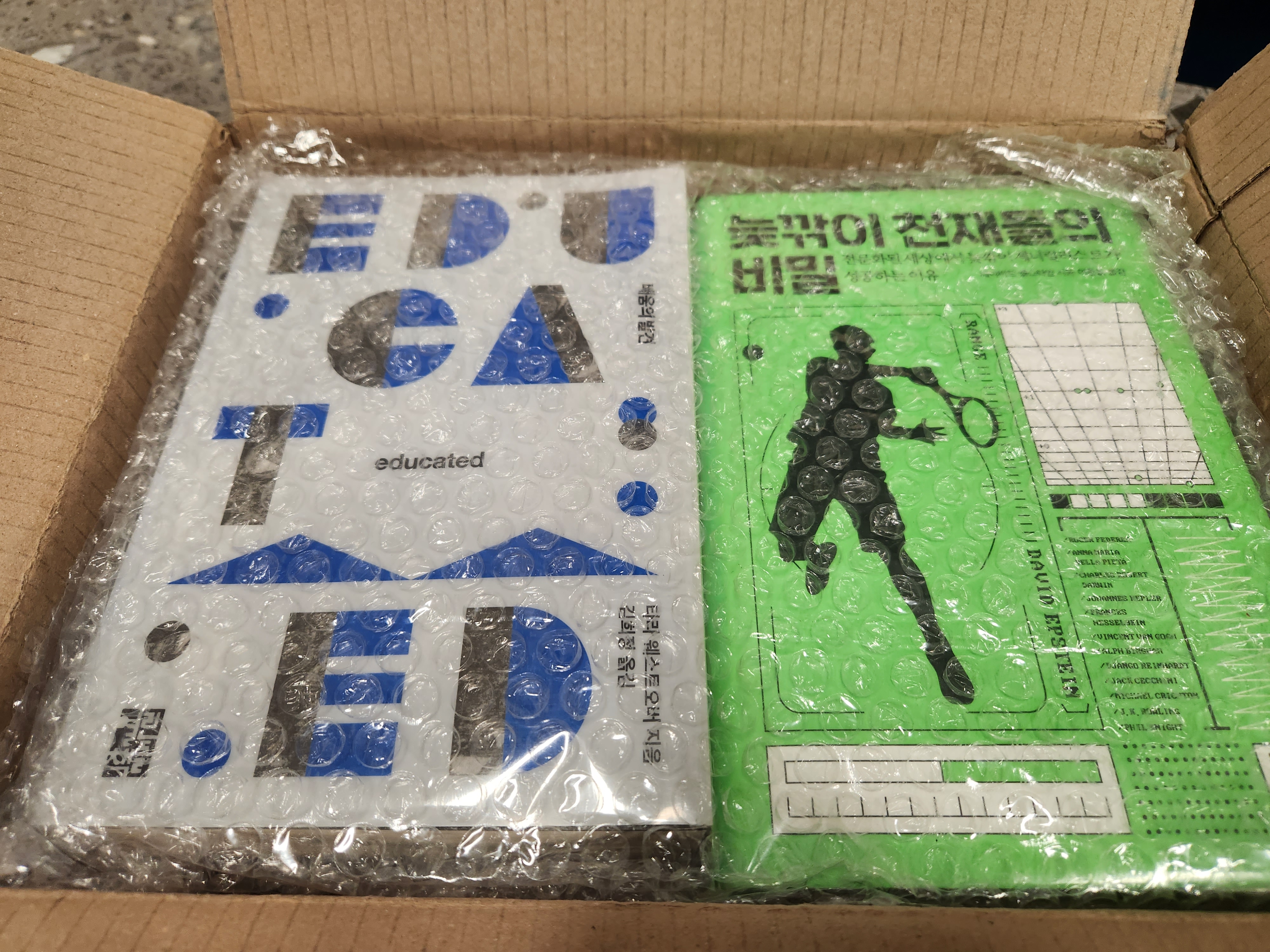 책들이 에어캡에 포장되어서 왔다.