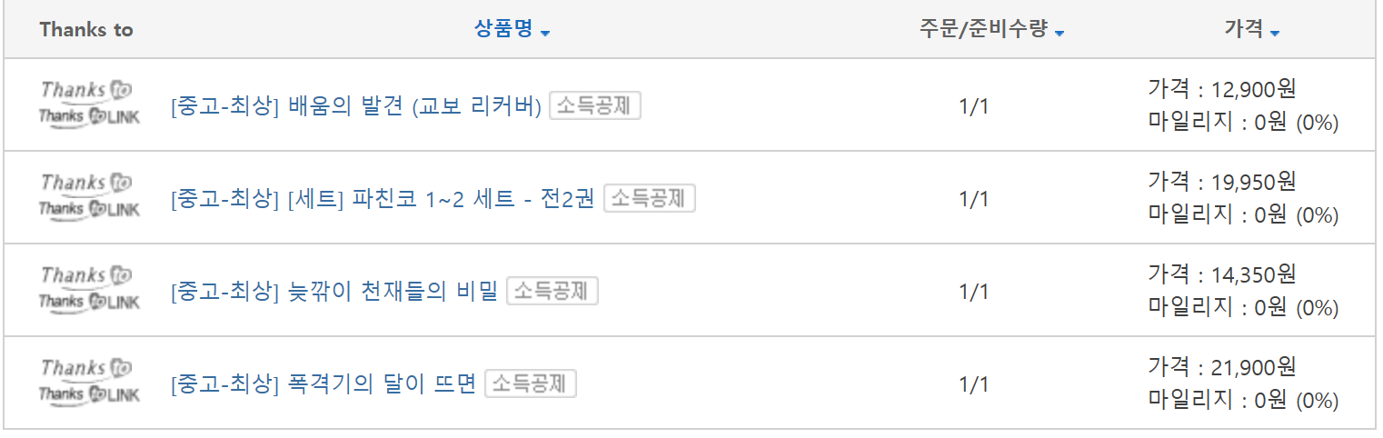 모서리가 찌그러져서 오거나 표면이 고르지 못한 책들이 오는데 그냥 좀 더 저렴한 중고서적을 구매하는 것도 괜찮지 않을까? 하는 생각으로 알라딘에서 중고서적을 구매해보게 됐다.