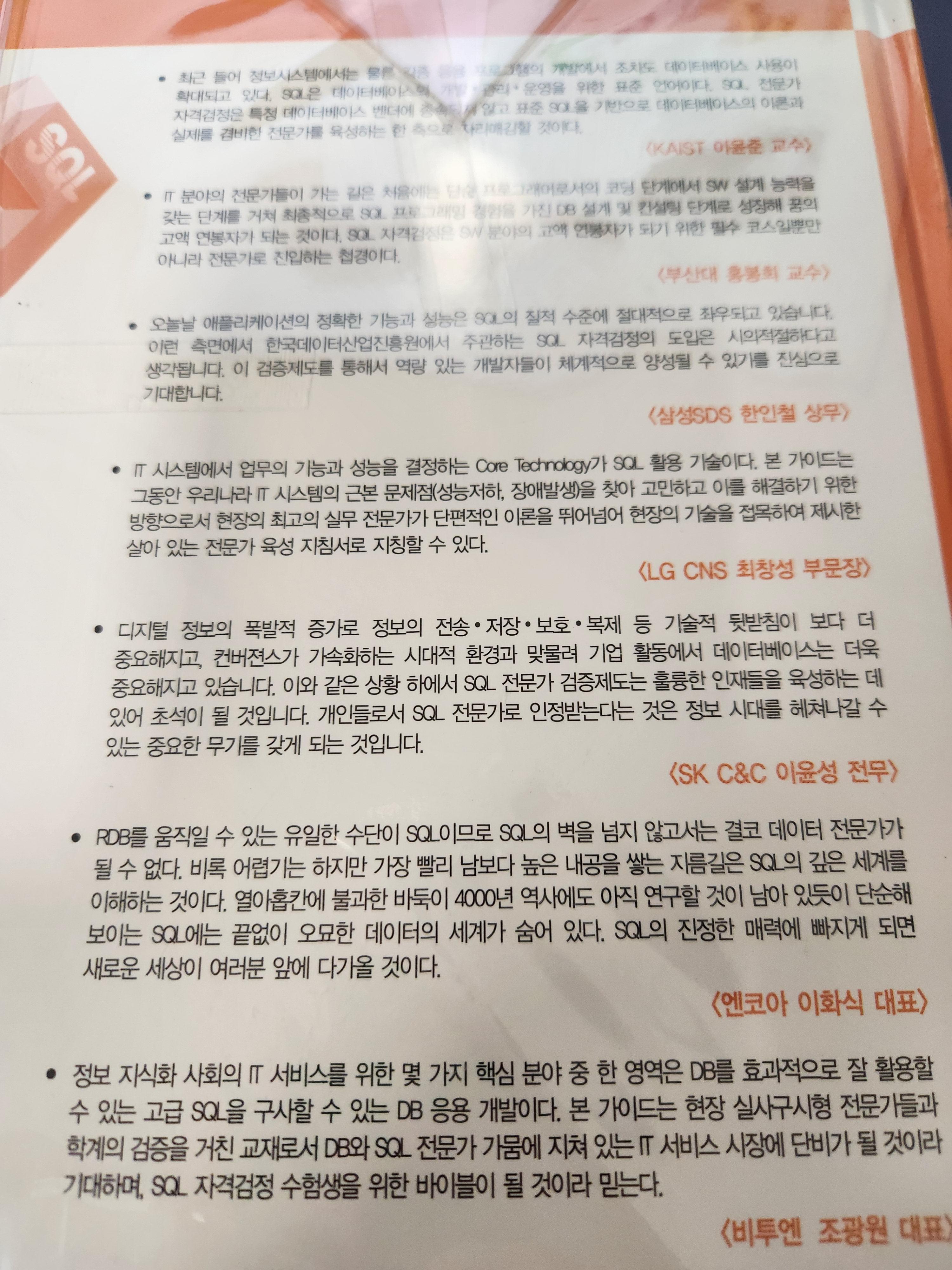 SQL 전문가 가이드 2020 이 책도 한국에서는 인정받는 책인것 같았다.