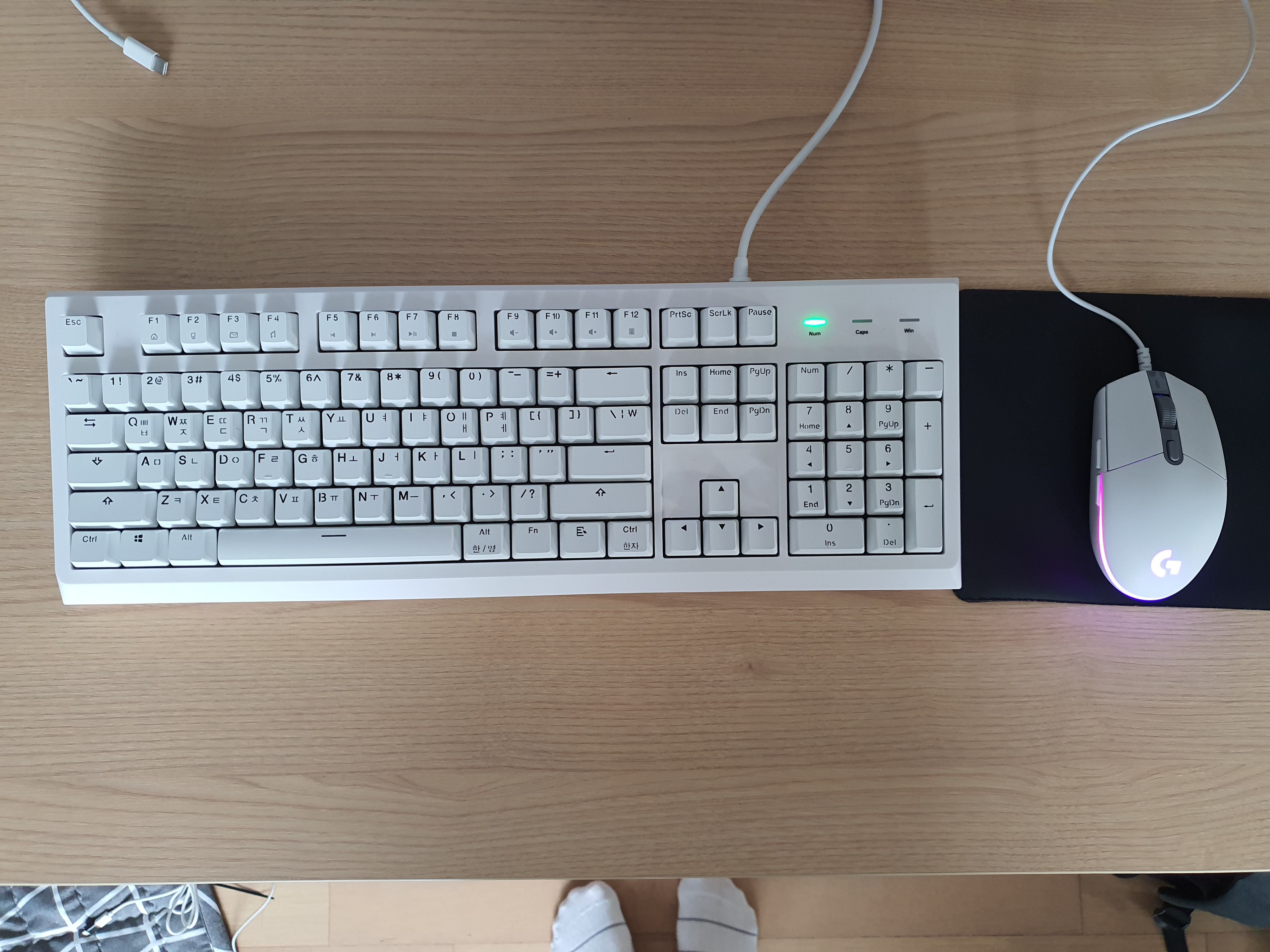 키보드도 화이트, 마우스도 화이트, 키보드 케이블도 화이트, 마우스 케이블도 화이트