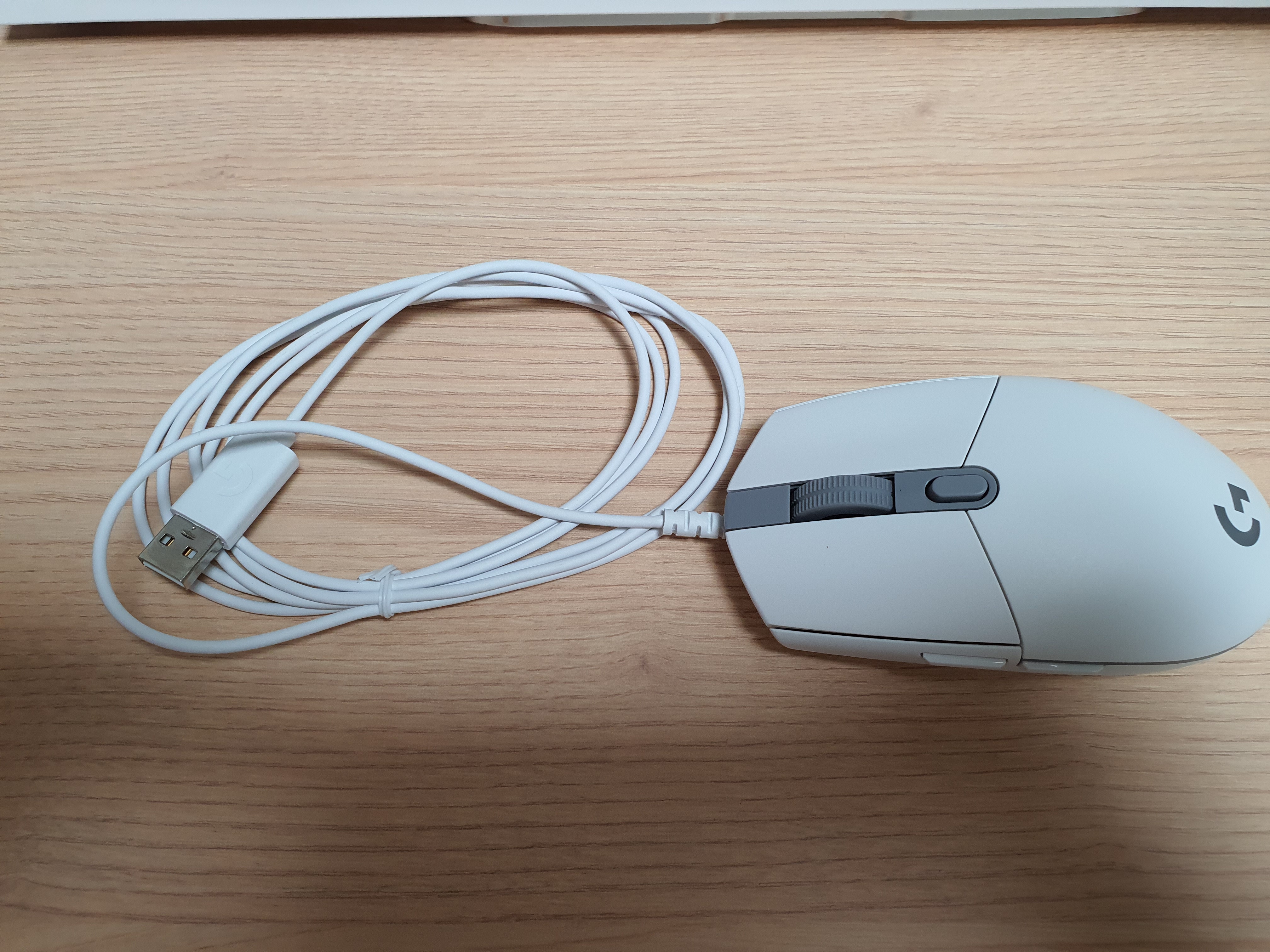 마우스를 컴퓨터 본체에 연결하면 LED가 들어온다 G 로고가 생각했던 것 보다 이쁘다