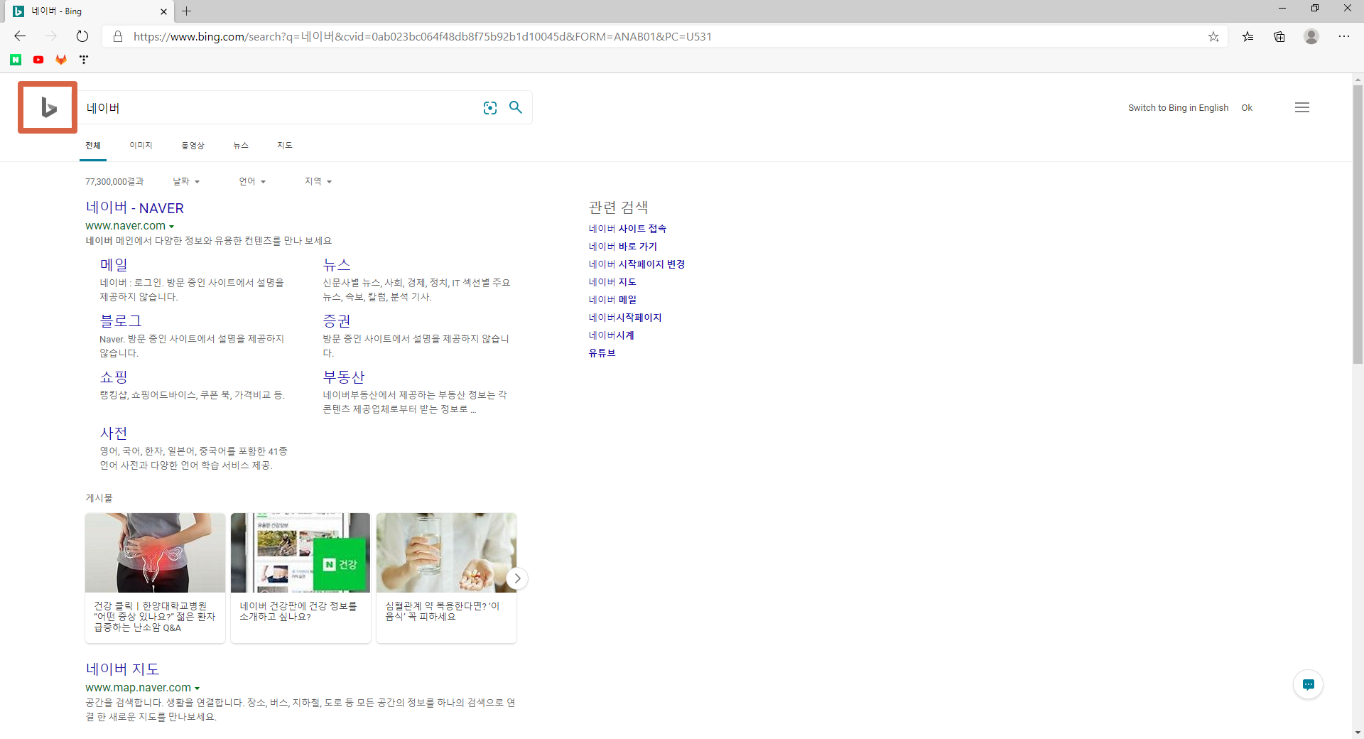 위의 사진에 제일 왼쪽을 보면 아이콘이 bing로 되어있는 것을 볼 수 있다.