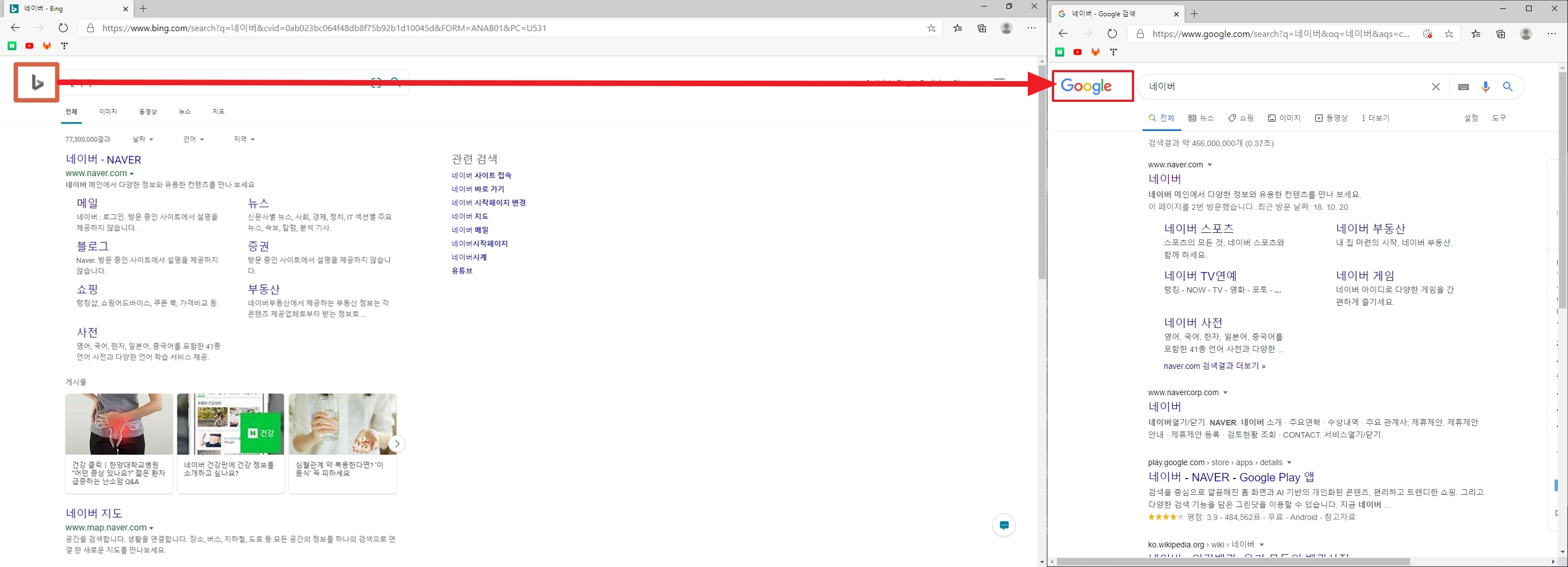 검색을 했을 때 bing엔진으로 검색한게 아니라 구글로 검색된 것을 볼 수 있다.
