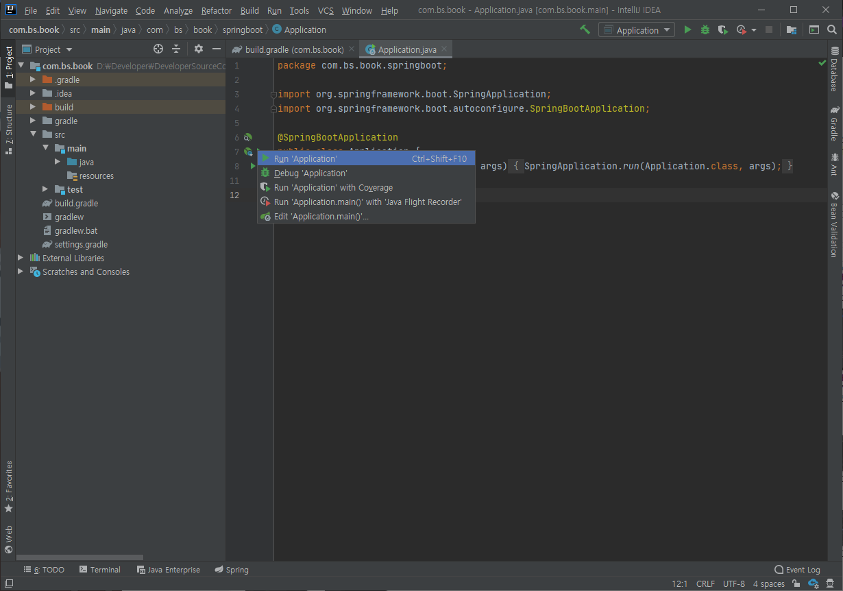 나의 경우에는 클래스명을 Application으로 했다.