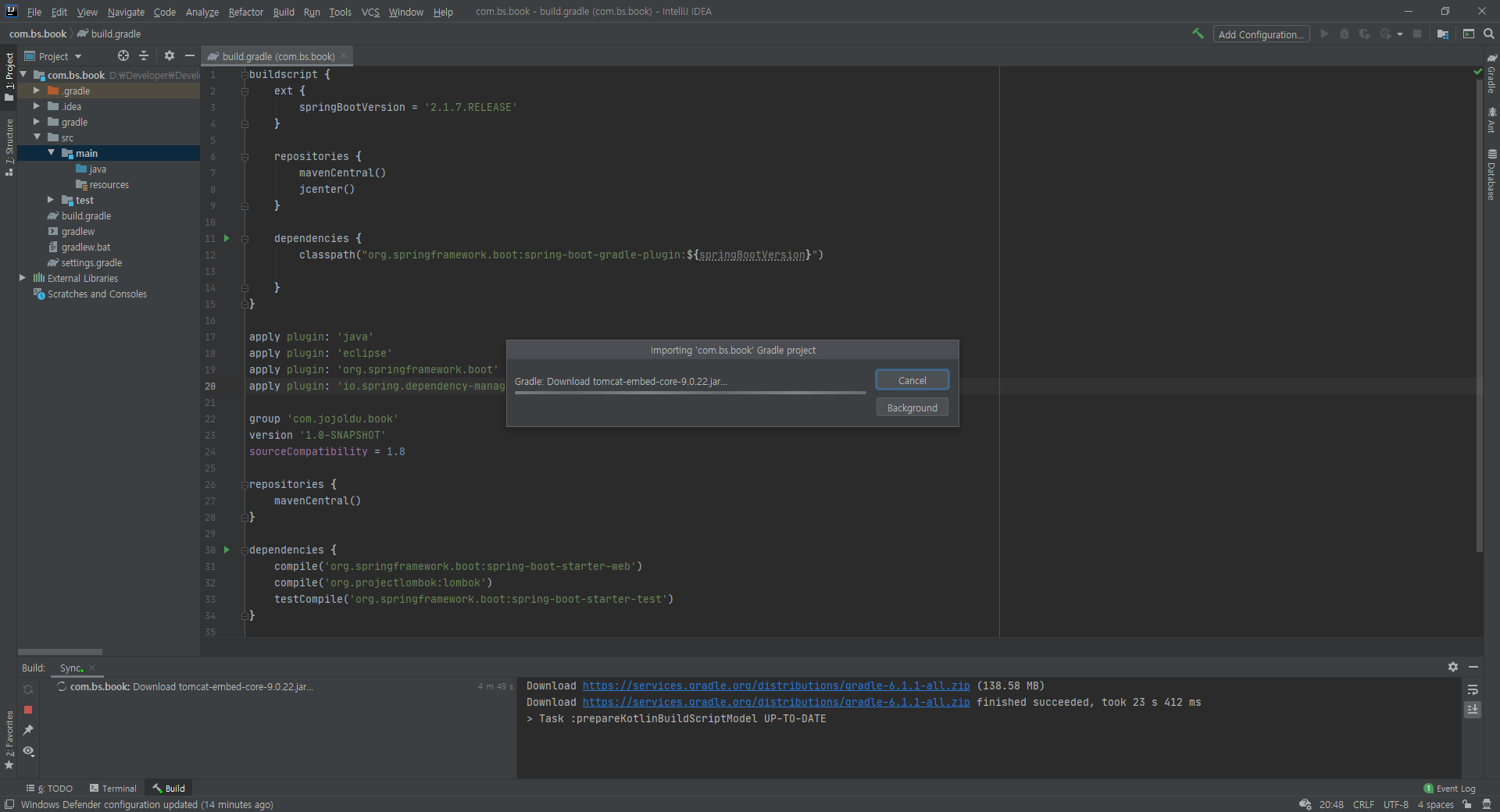위와 같이 그레이들에 필요한 파일들을 자동으로 import하기 시작한다.