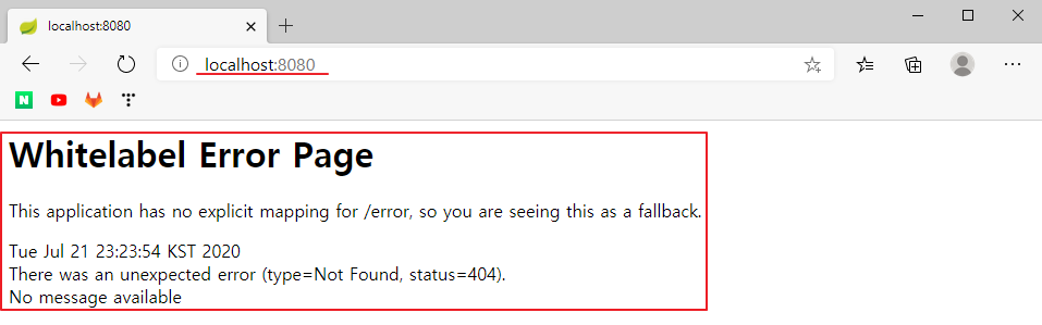 localhost:8080으로 접속해보면 접속이 되는 것을 볼 수 있다.