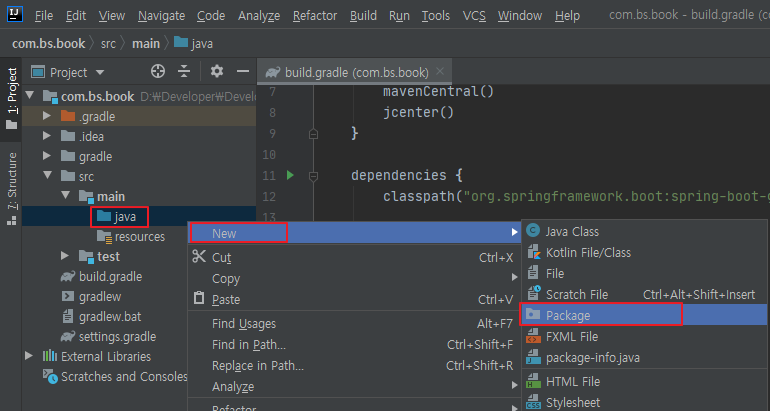 나의 경우에는 com.bs.book로 설정했다.