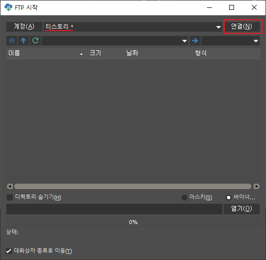 그다음 서버 IP와 포트, 사용자명, 암호를 입력해주자