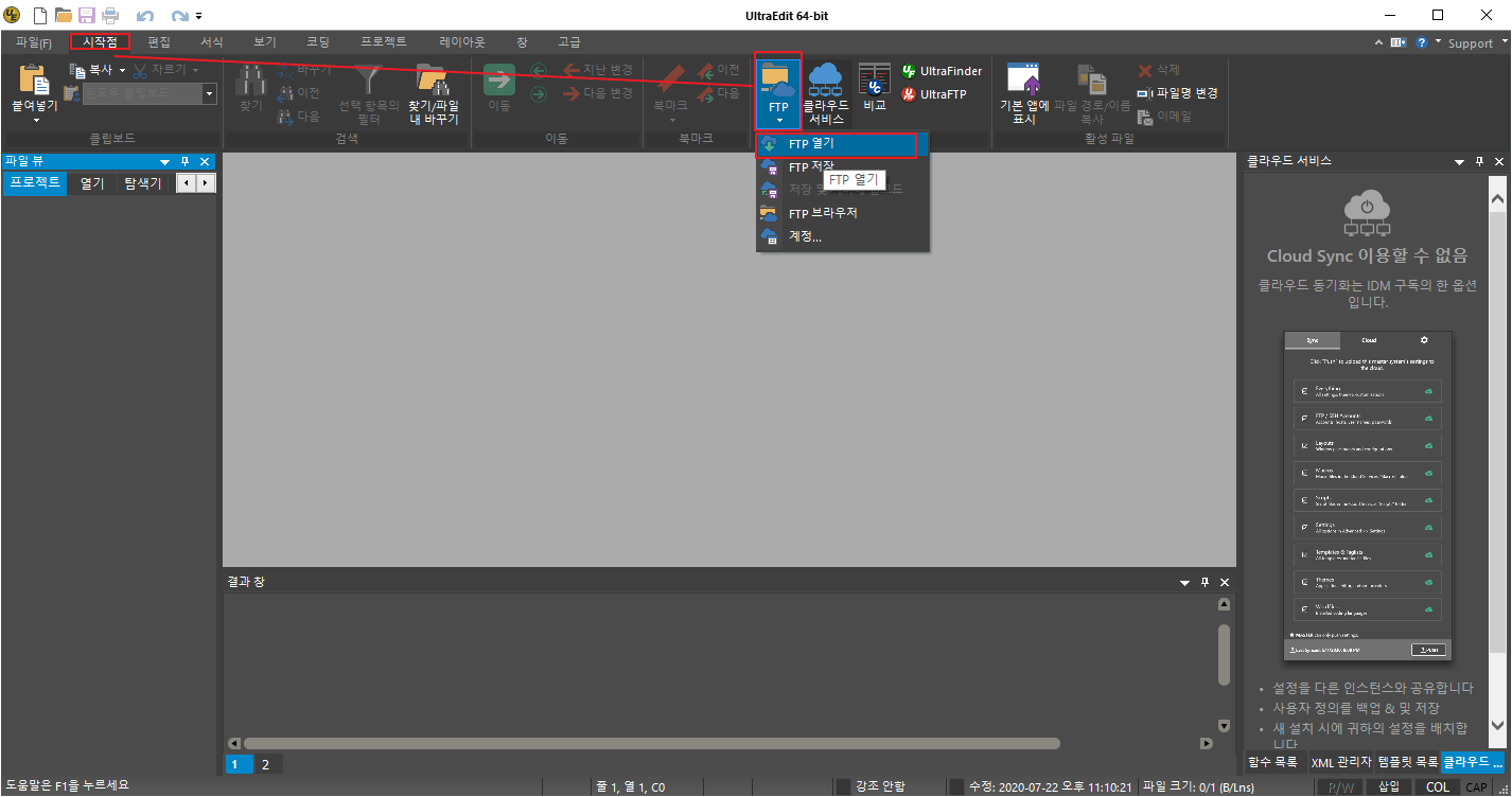 울트라 에디트에서 FTP를 연결하는 방법은 아주 간단한데