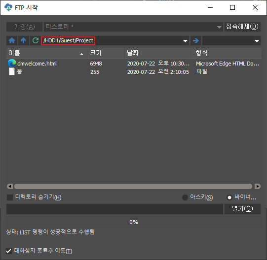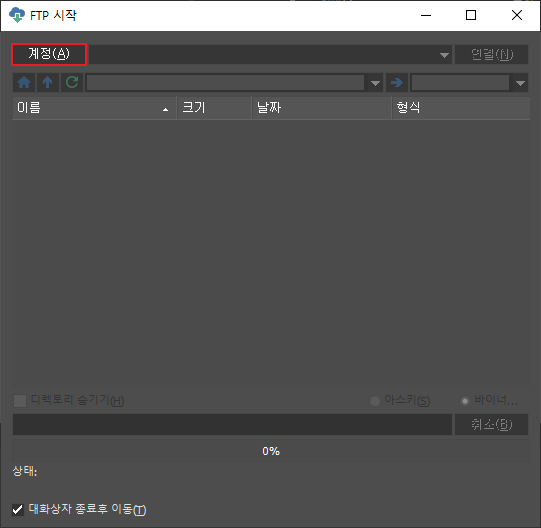 파일을 클릭하여 FTP를 찾고 있을 것이다.ㅋㅋㅋ