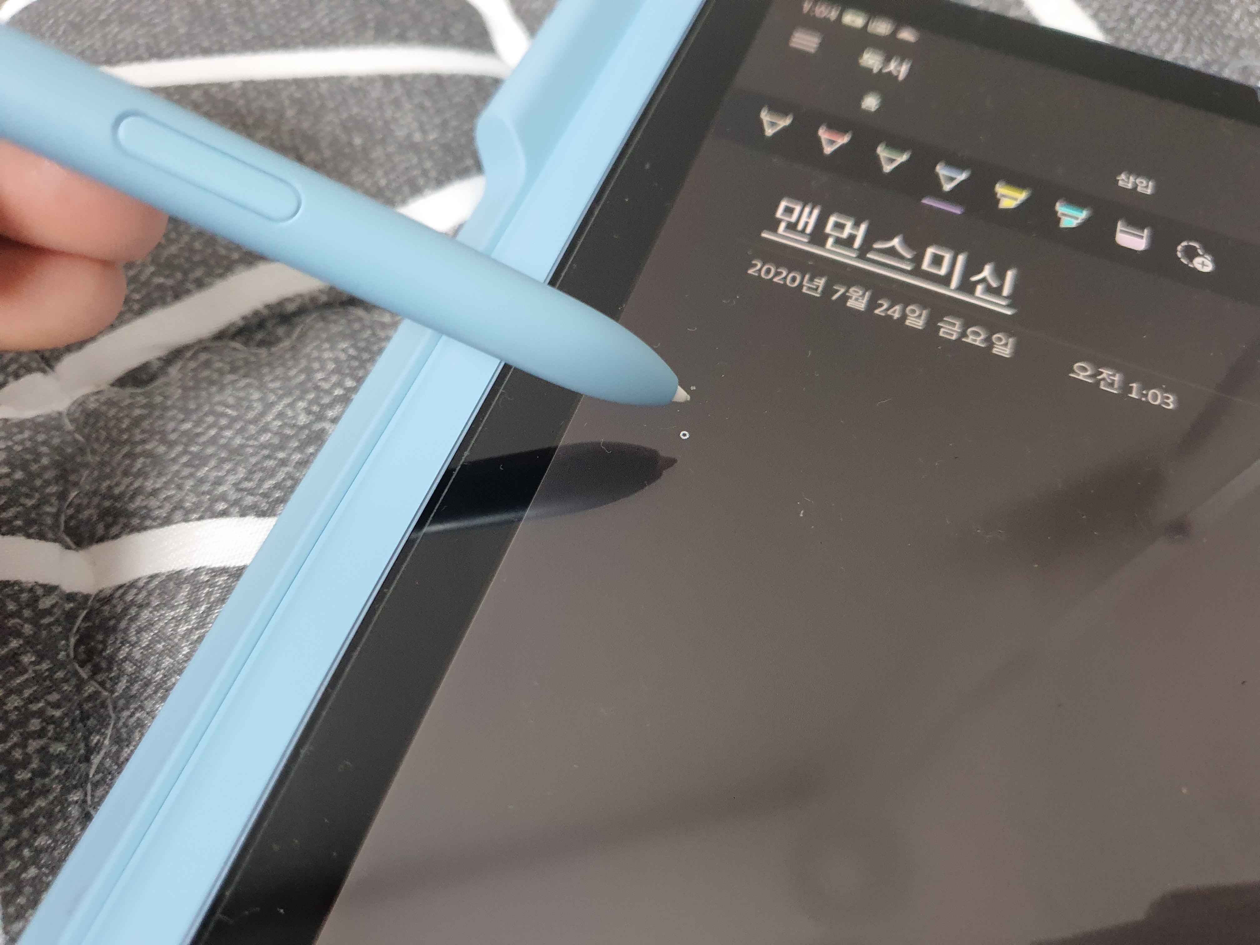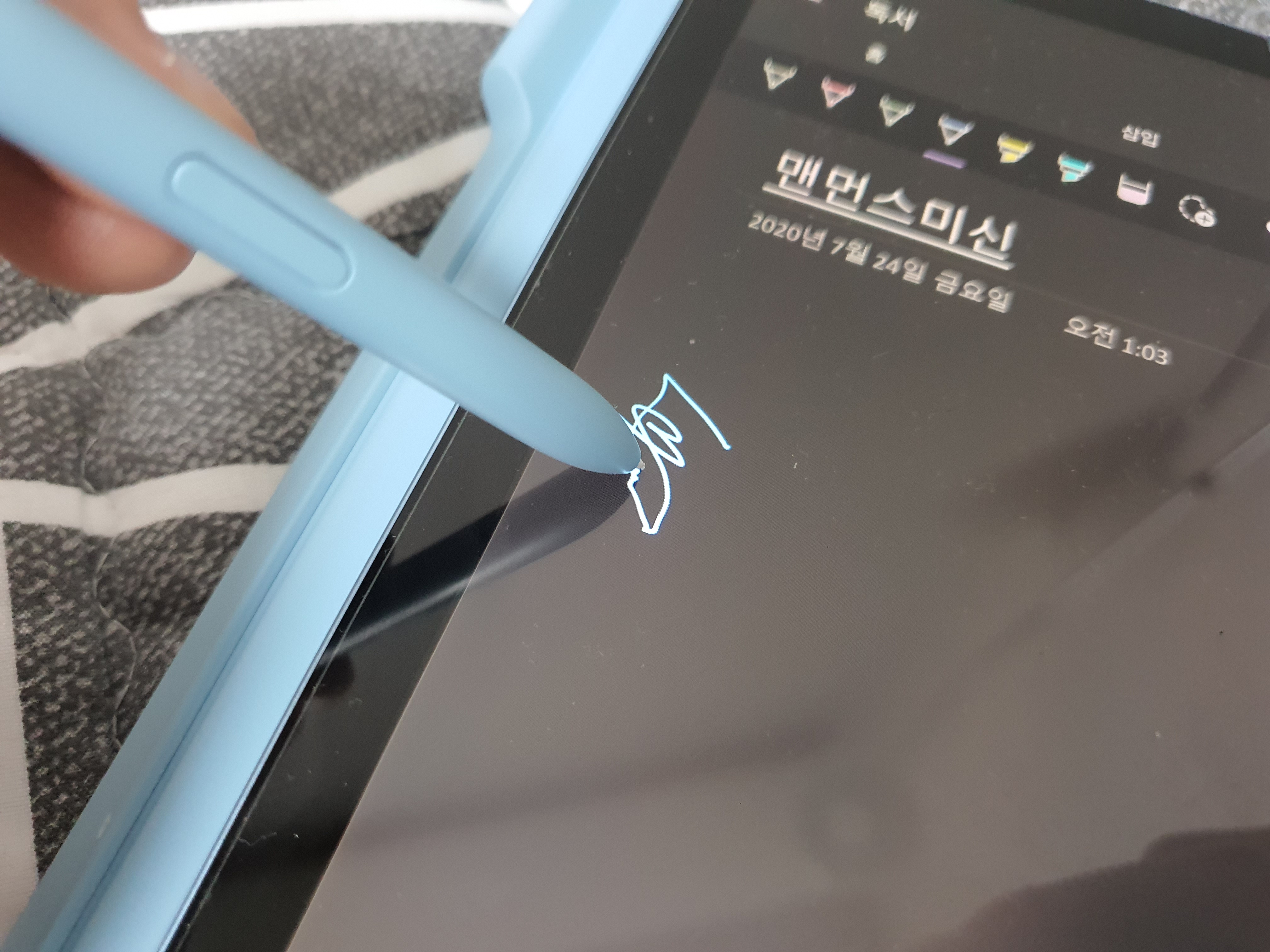 따로 설정버튼이라던가를 이용해서 펜모드를 이용해야지만 S펜으로 필기를 할 수 있다.