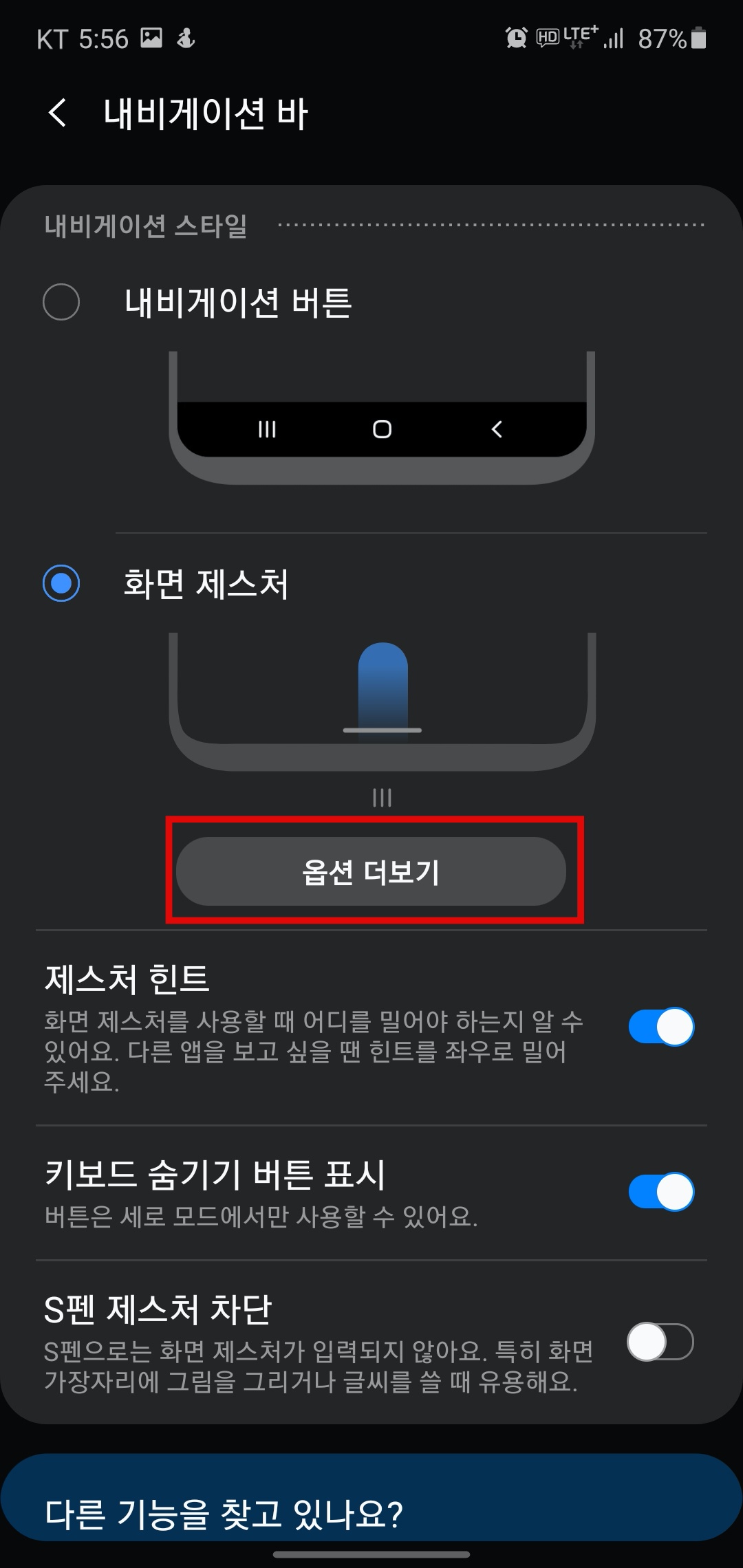 화면 제스처를 체크해주었다면 옵션 더보기를 클릭해주자