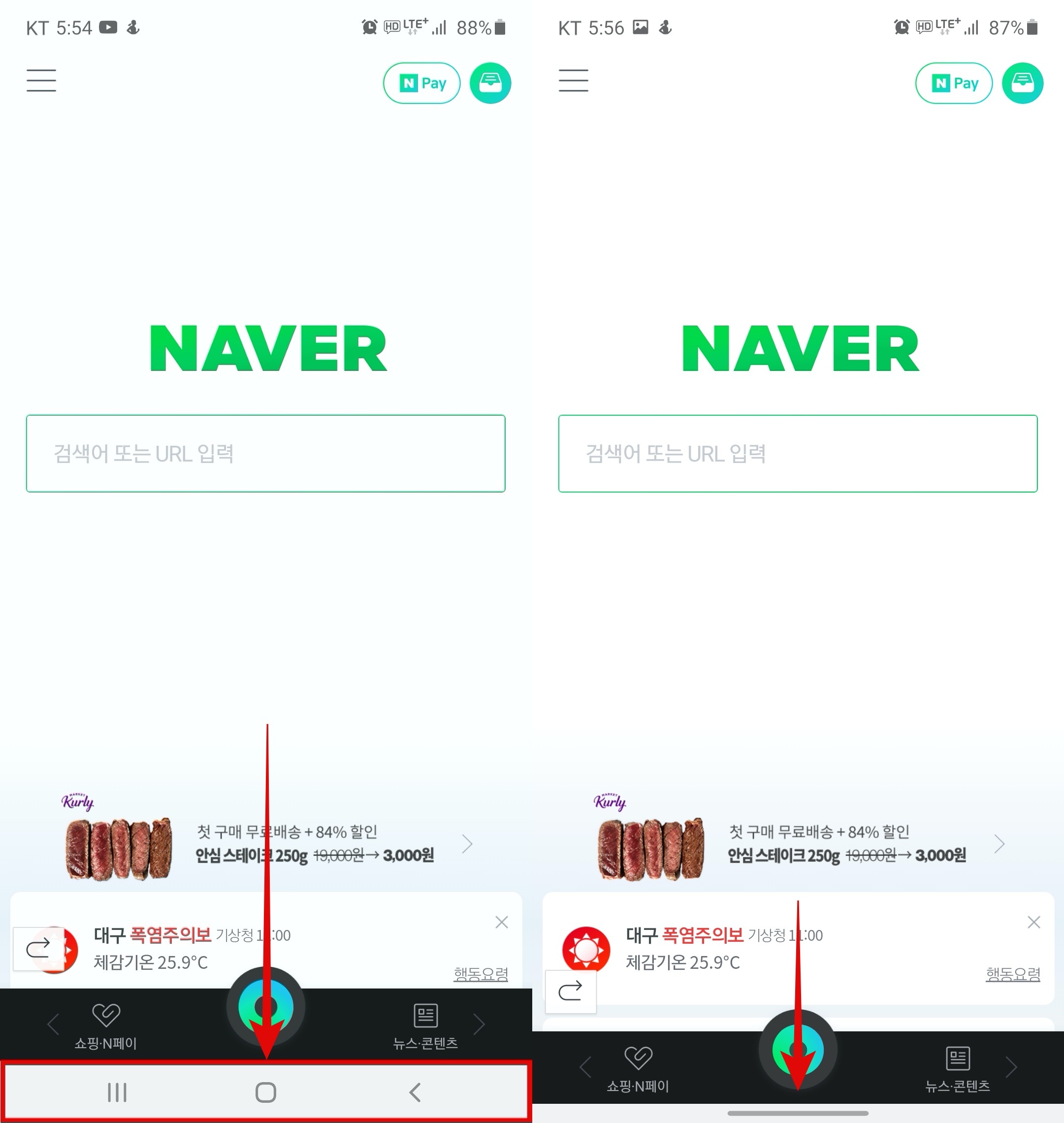 내비게이션바를 스마트폰 액정 외부에 놔둘 공간이 없어