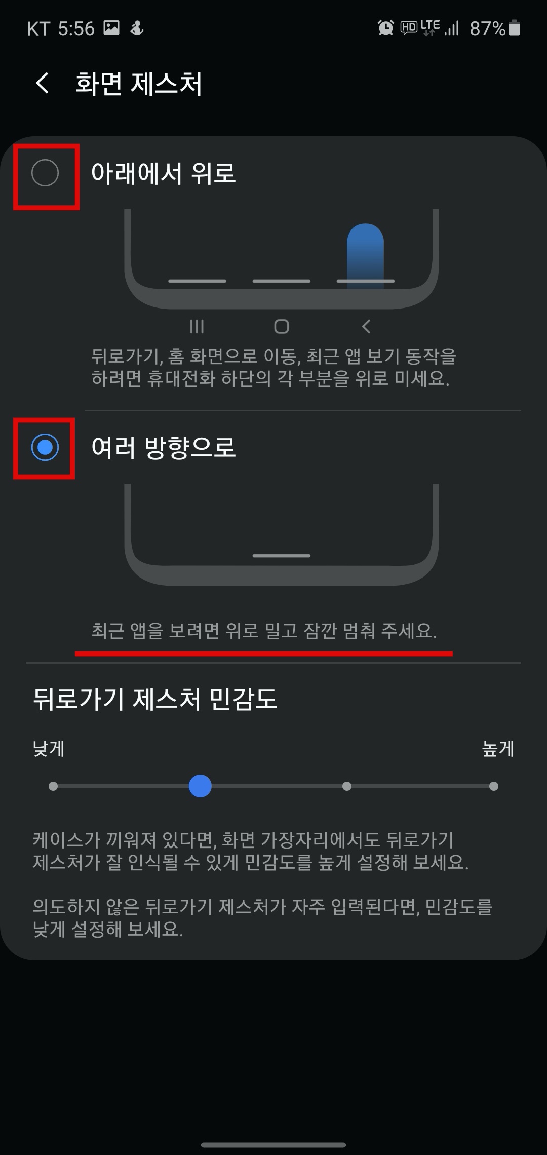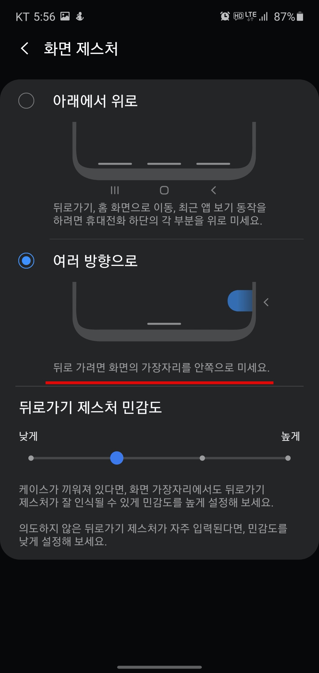 화면 제스처를 체크해주었다면 옵션 더보기를 클릭해주자