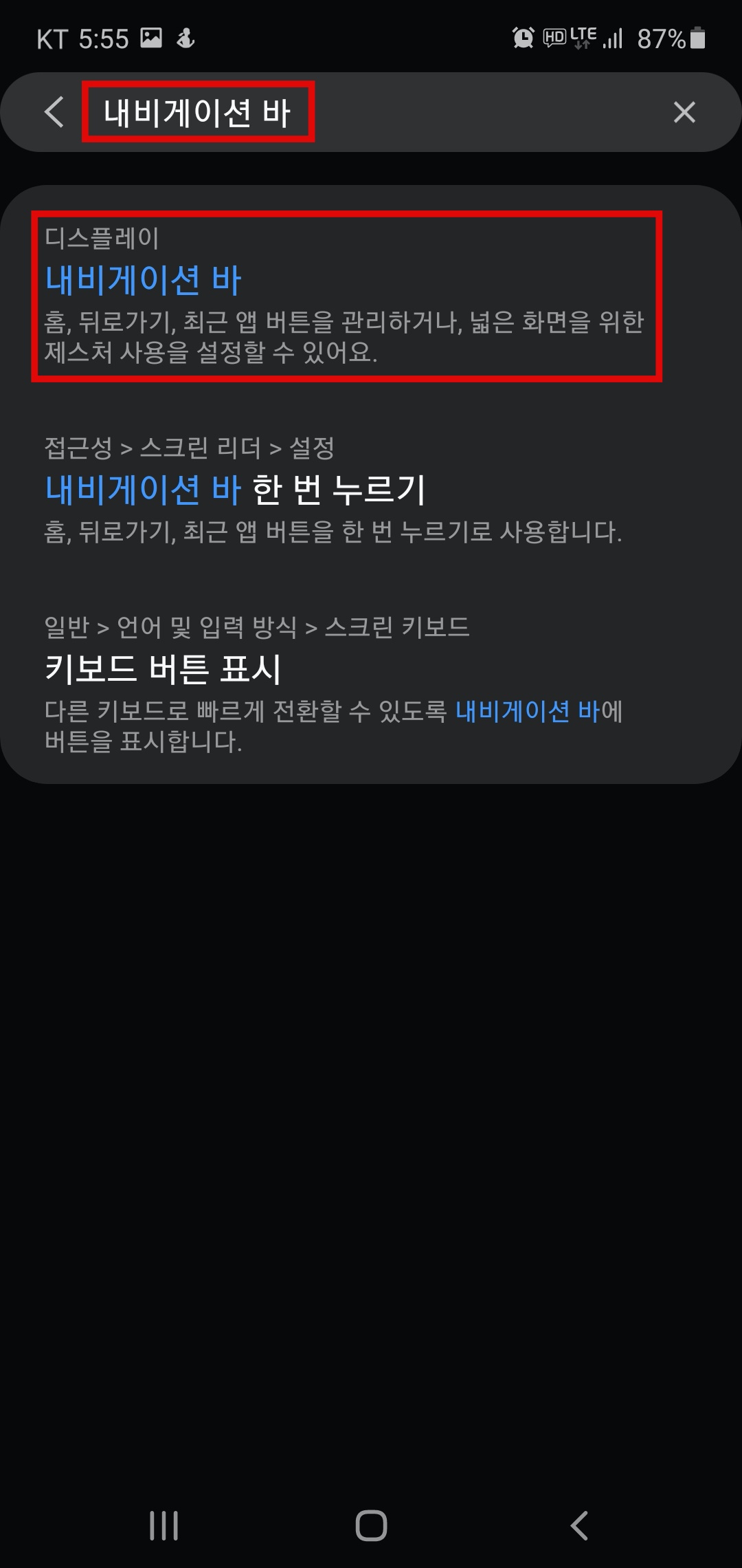 내비게이션바를 스마트폰 액정 외부에 놔둘 공간이 없어