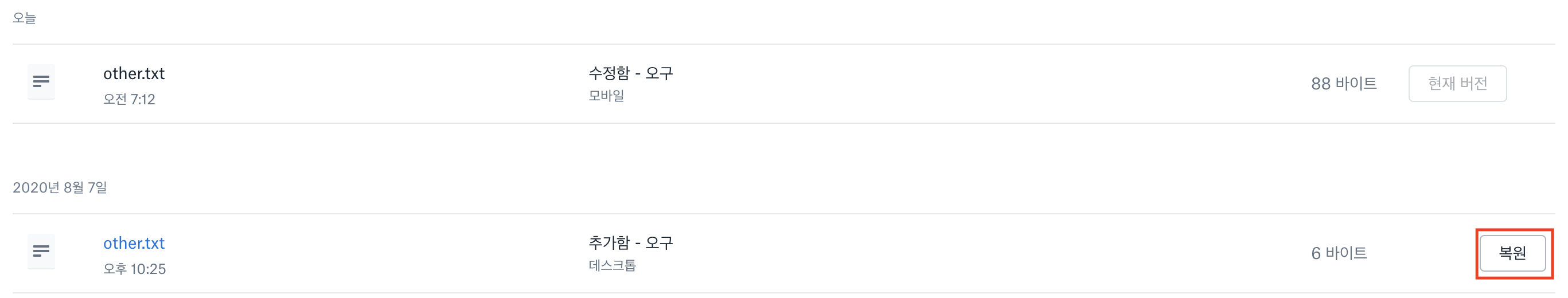 하지만 드롭박스의 경우 이력관리를 자동으로 해주는데