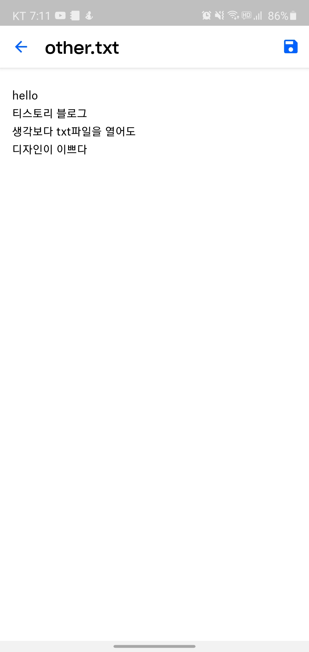 txt파일도 저장해보면 생각보다 디자인이 괜찮다. 윈도우 편집기에서 작업하는 메모장 같은 느낌이 아니다.