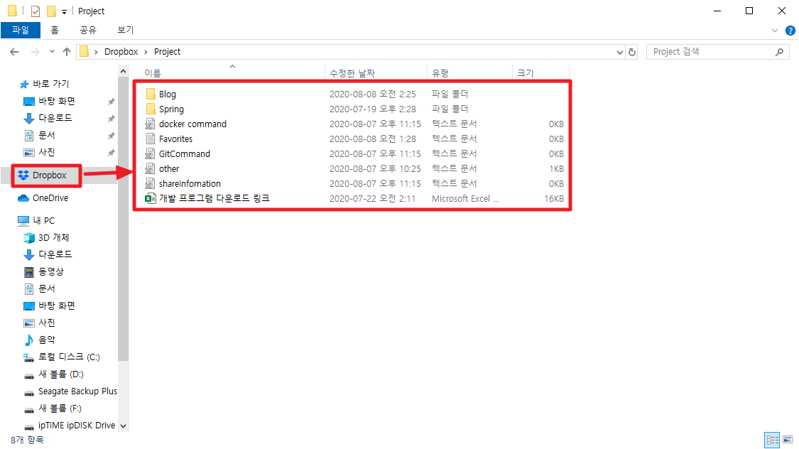 반면 원드라이브와 드롭박스의 경우에는 개인 PC에 설치되어있는 것 처럼 사용이 가능하다.