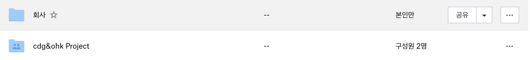 회사 폴더의 경우 내가 개인적으로 사용하는 공간이고