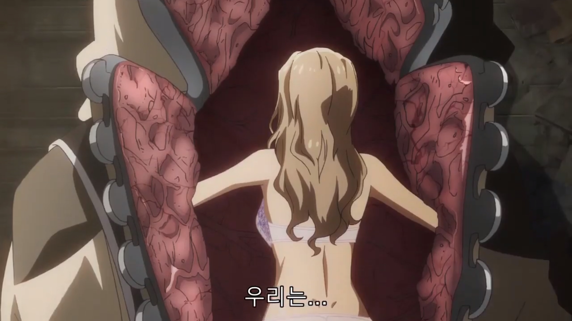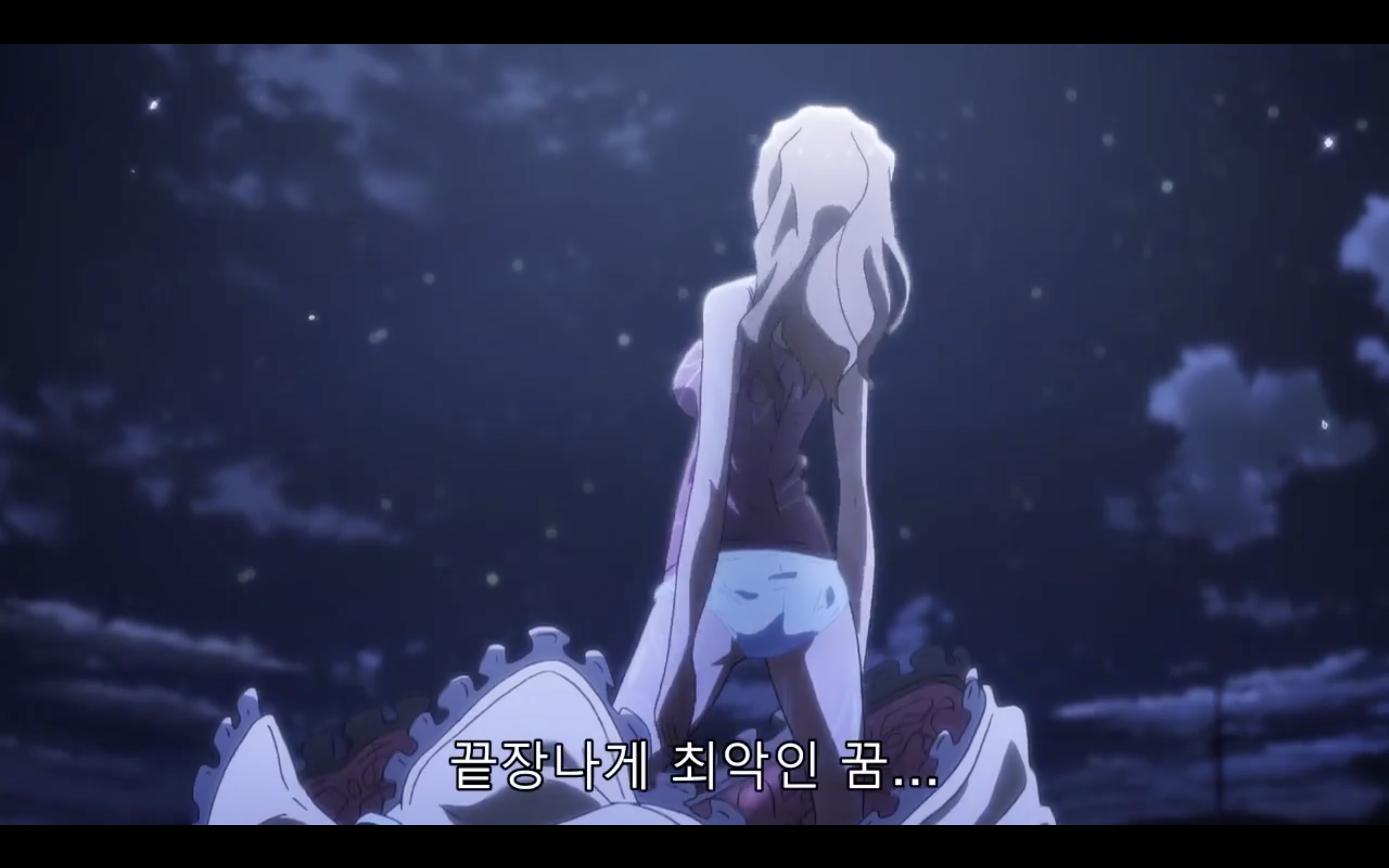 요러한 장면에서도 하필이면 여자 주인공이 팬티만 입고 있다.