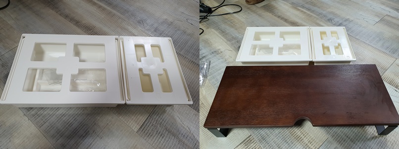 모니터 받침대에 히든 서랍을 부착을 한 모습이다.
