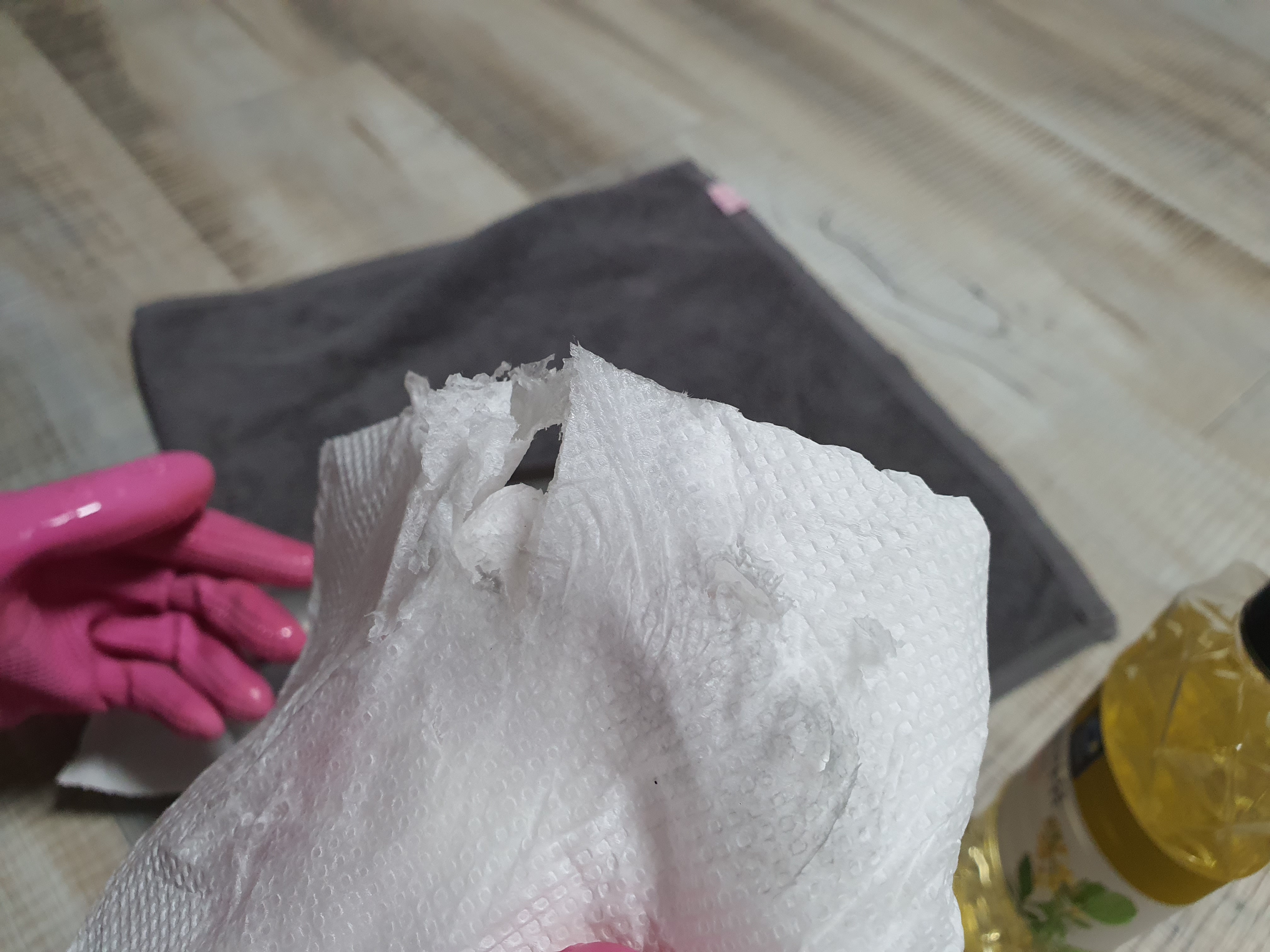 나는 참고로 손에 식용유가 묻는게 싫어서 고무장갑을 끼고 연마제를 닦았다.