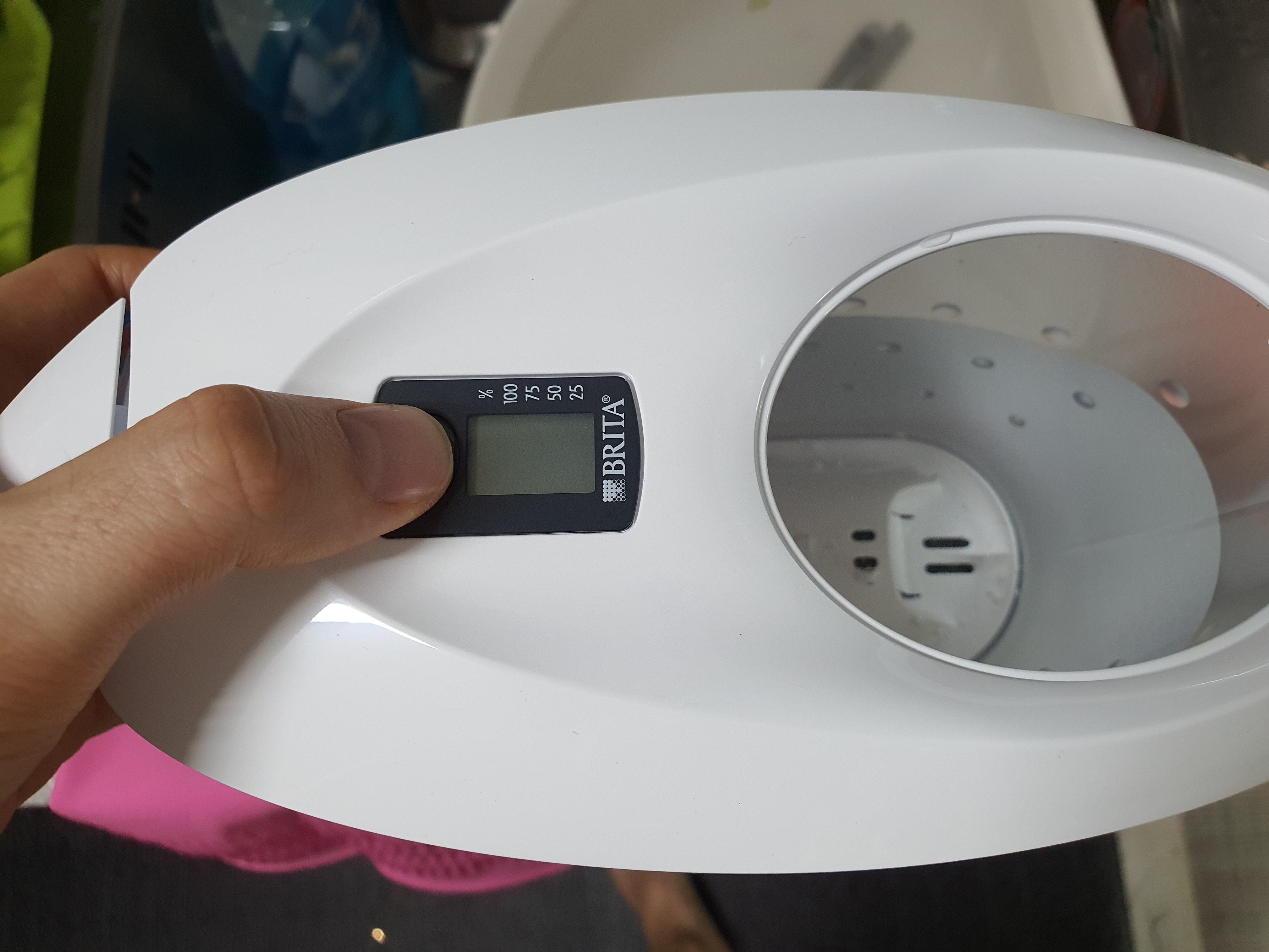 우선 처음 버튼을 누르면 4칸이 꽉 차있는데 일주일당 1칸씩 소모된다고 보면 된다. 브리타정수기 필터의 경우 사용기한은 1달정도 되며 필터 1개로 물 140L를 마실 수 있다고 한다.