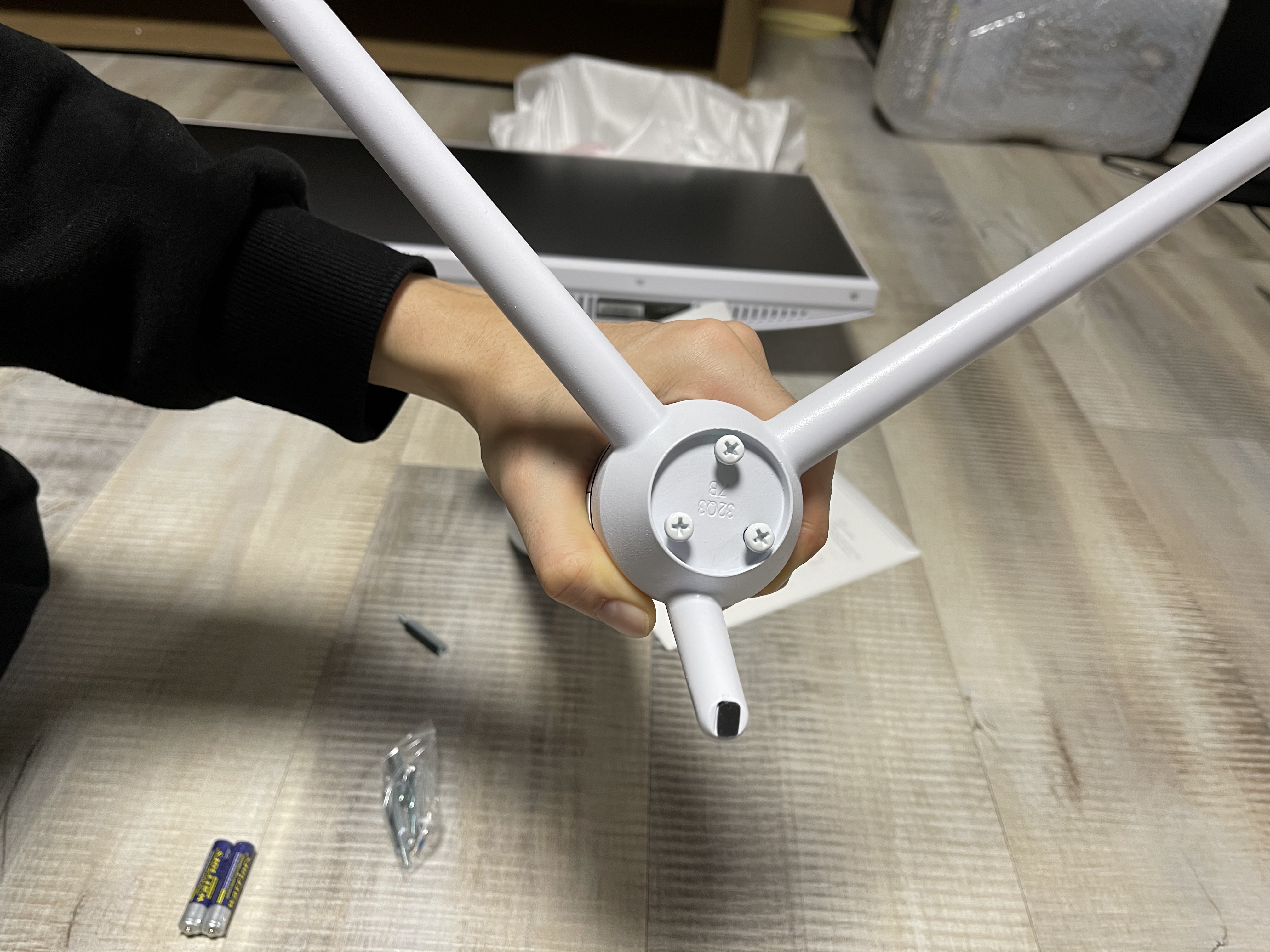 모니터 받침대를 조립한 모습이다.