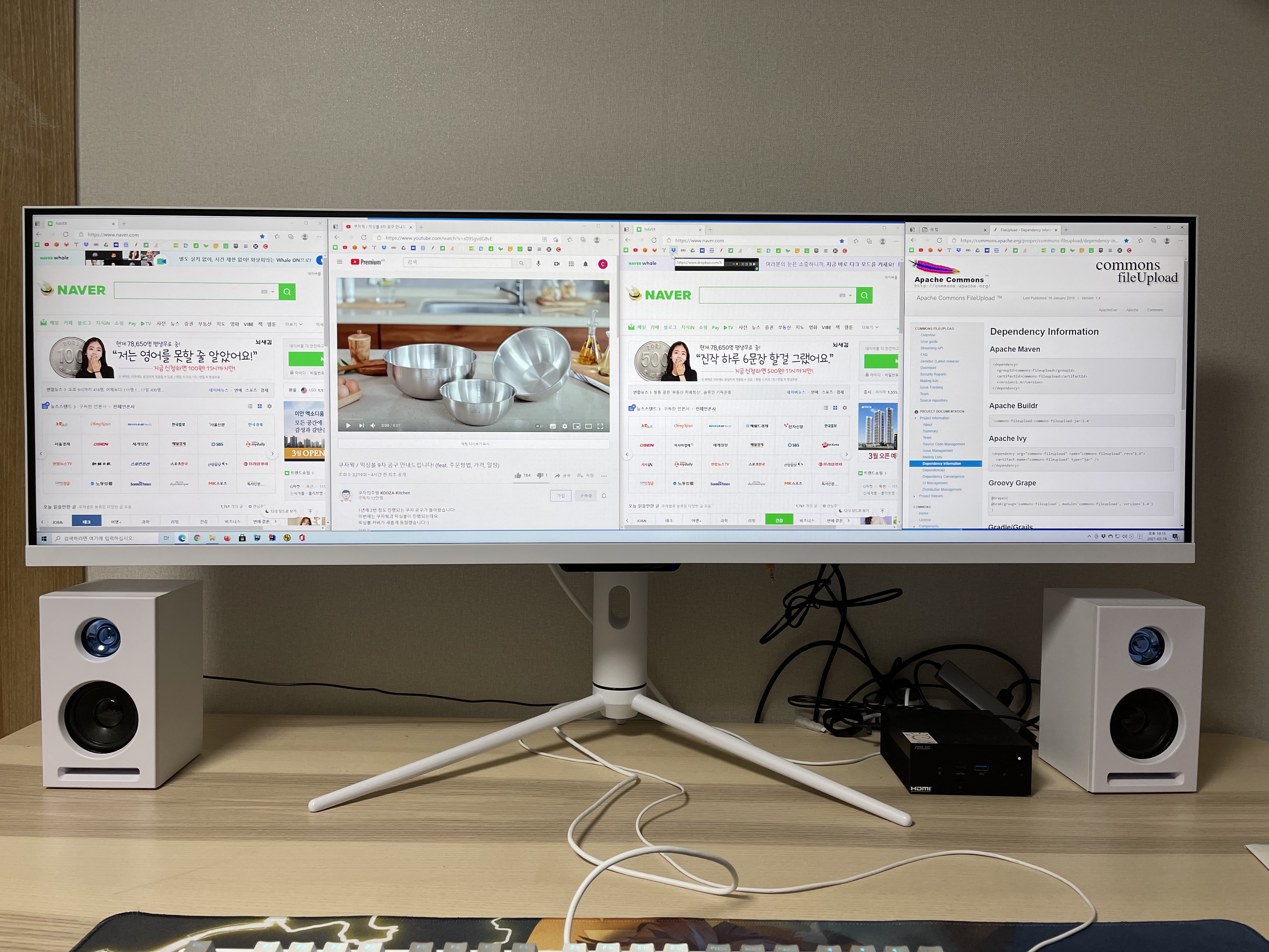 인터넷 서핑창을 4개까지 끼워서 사용 할 수 있지만 3개가 적당하다고 생각이 된다. 4개의 창을 띄우고 사용하면 창이 좀 좁다는 느낌을 받는다. 네이버 자료실 software.naver.com/software/summary.nhn?softwareId=MFS_100914 에 접속하면 모니터 분할 프로그램을 다운 받을 수 있는데 해당 프로그램을 다운받아서 3분할로 사용하면 적당하다고 생각 된다.