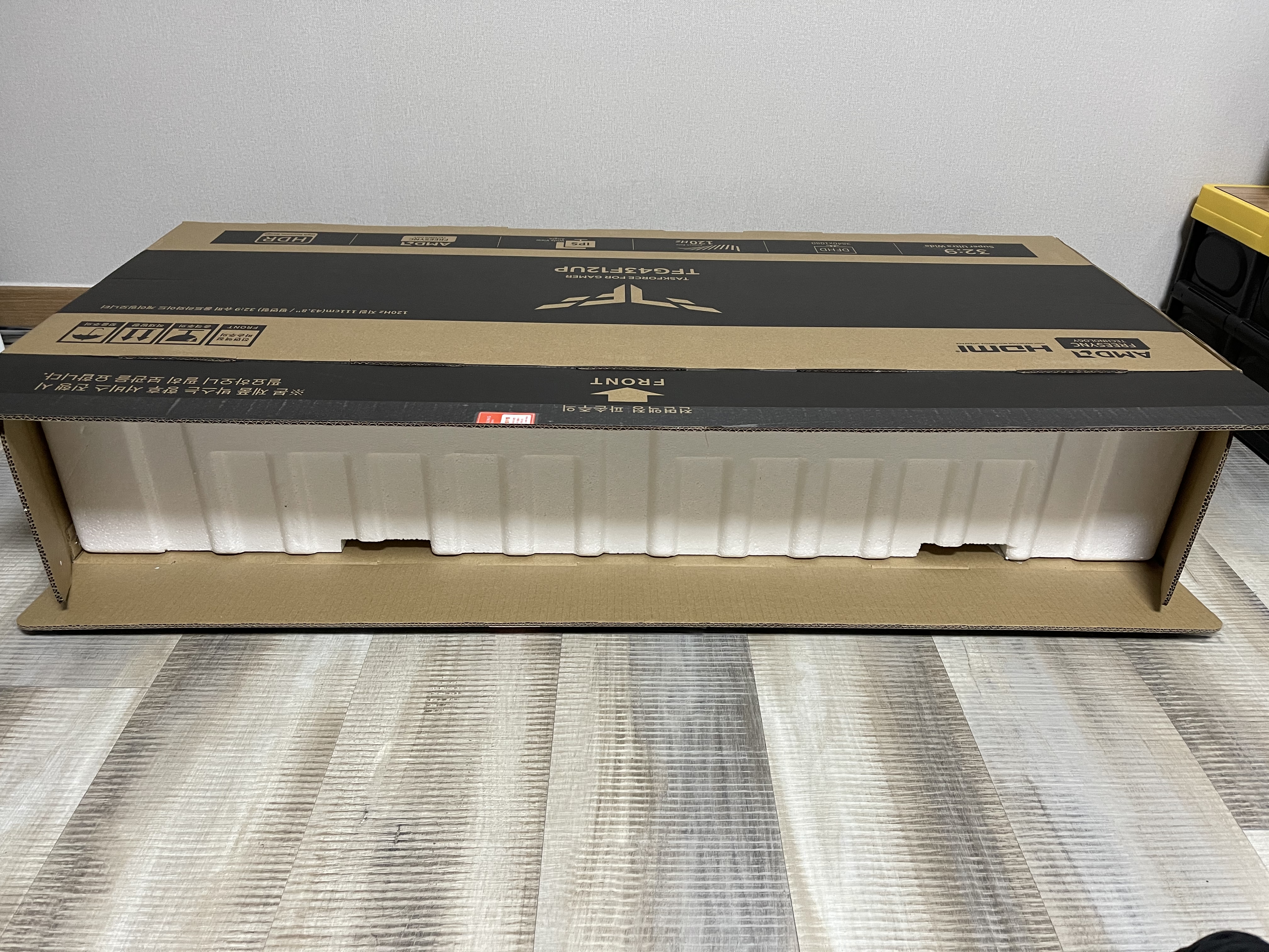 에어캡을 벗긴 모습이다. 사진을 잘 못 찍어서 그런지 박스가 그렇게 길어보이지는 않는데 실제로 보면 엄청 길다.